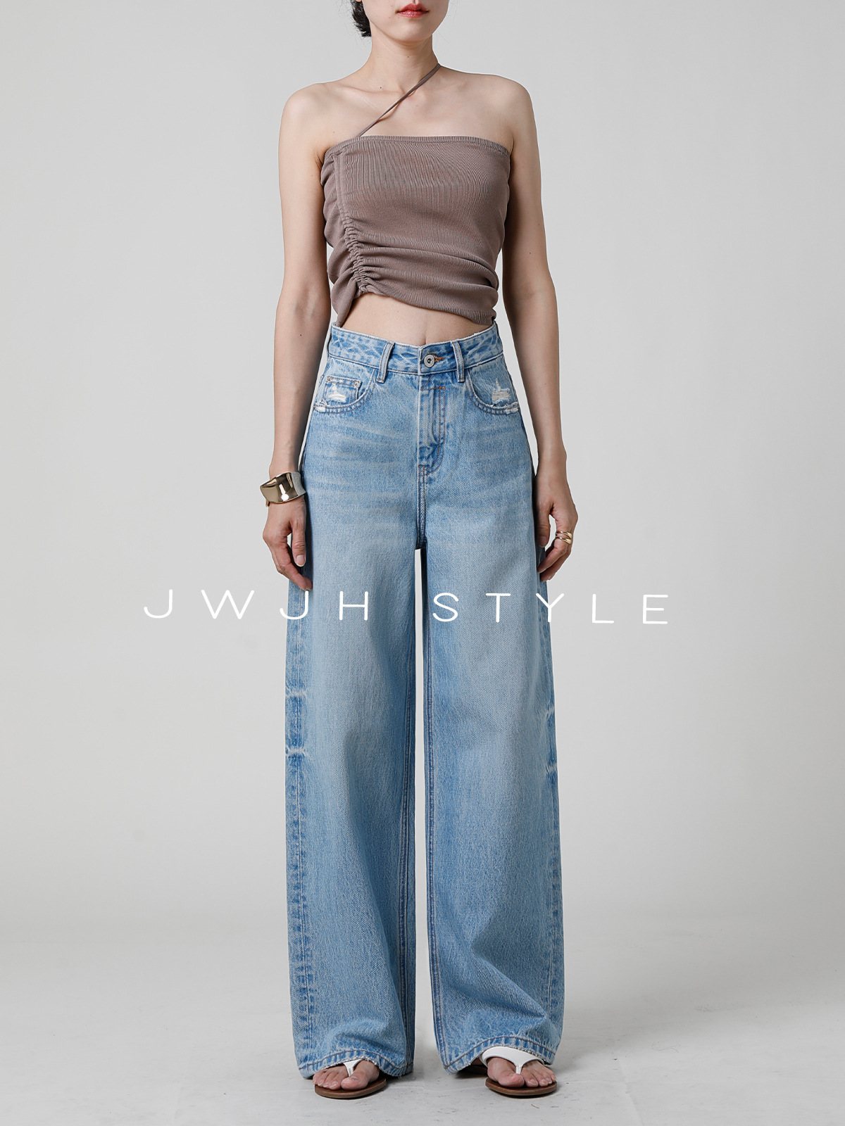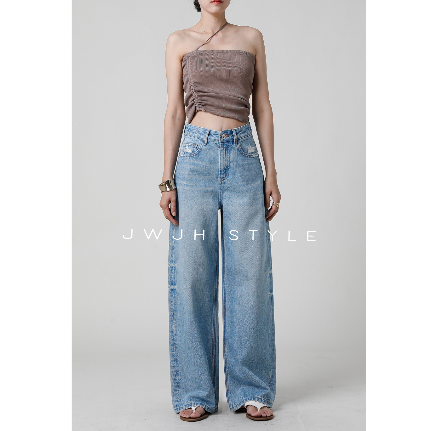 레이지 스타일 하이웨이스트 와이드 진 | 여성용 꽃무늬 디자인 스트레이트 바닥 기장 팬츠 [2025 가을 겨울]스토어 가기