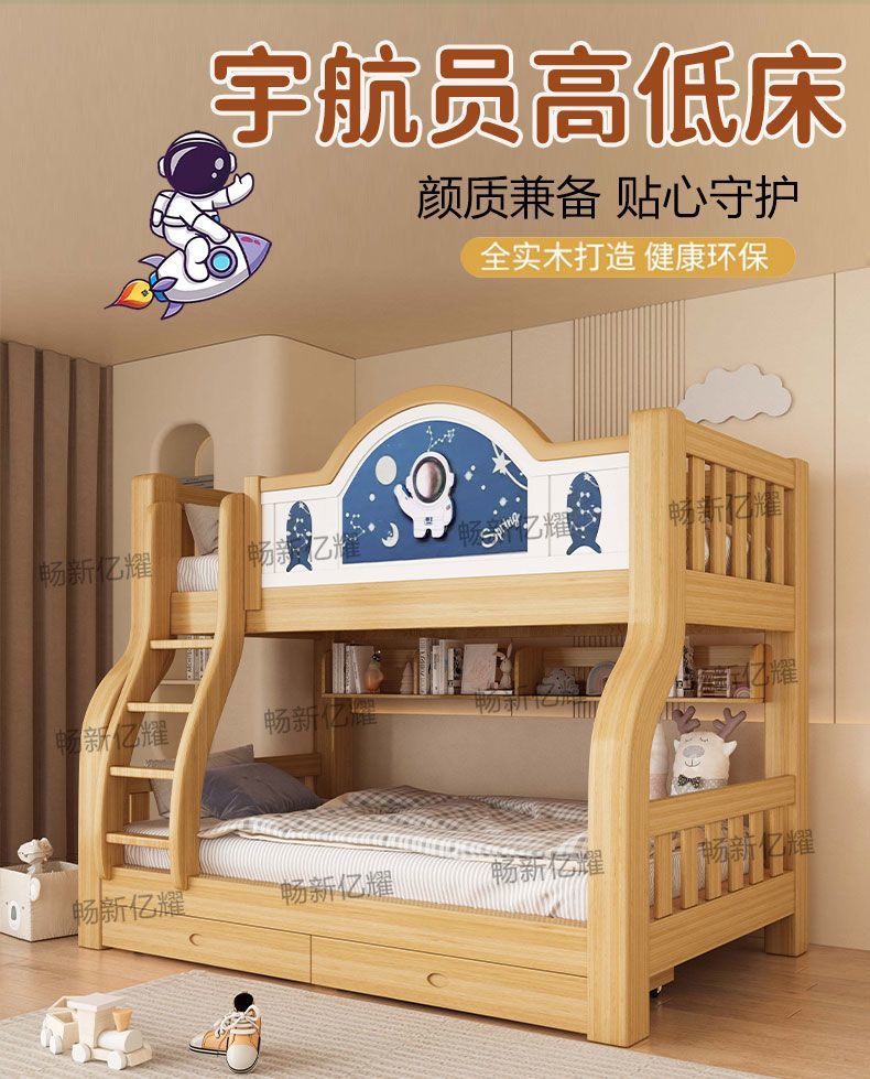 올 원목 이층침대, 이층침대, 다기능 어린이침대, 성인용 하이앤로우 침대, 엄마와 아이를 위한 더블침대