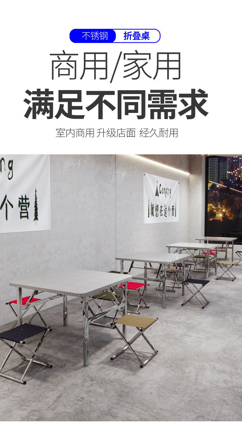 두꺼운 스테인레스 스틸 접이식 테이블, 휴대용 바베큐 테이블, 야외 노점 야시장 간단한 식탁, 둥근 모서리 작은 사각형 테이블스토어 가기