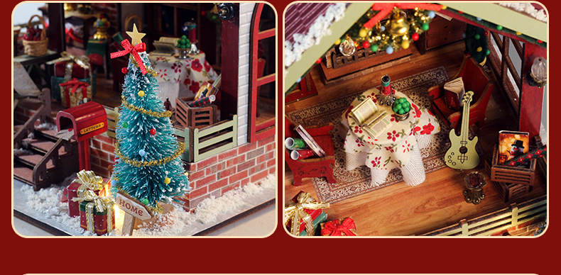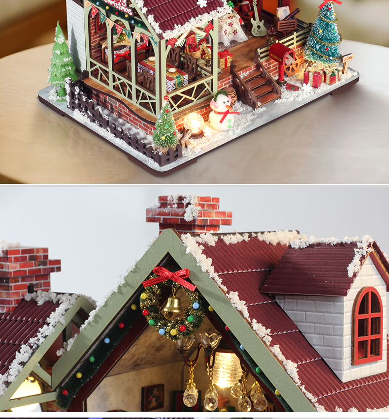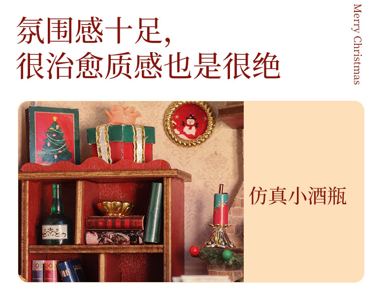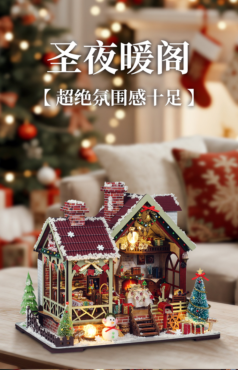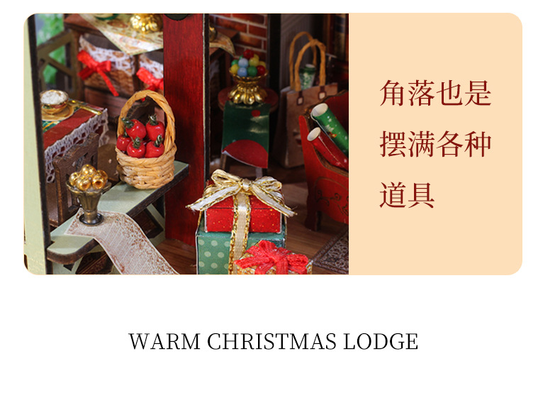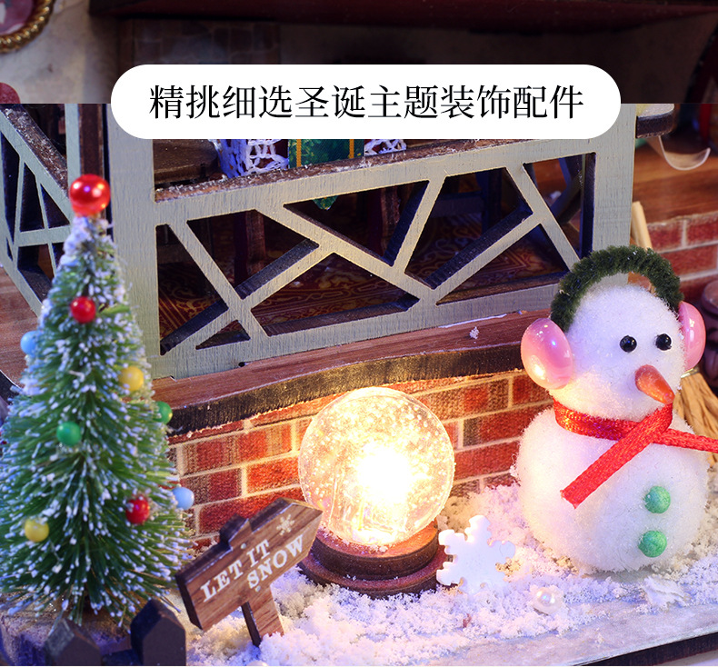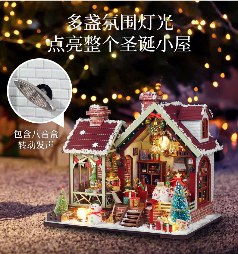 국경 간 DIY 캐빈 손으로 조립한 미니어처 하우스 성탄절 따뜻한 방 장면 모델 장난감 크리스마스 창조적 인 선물스토어 가기