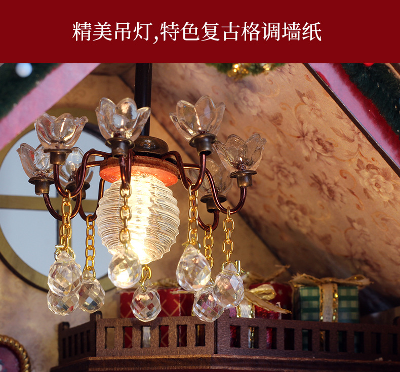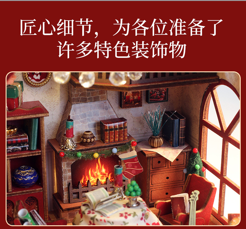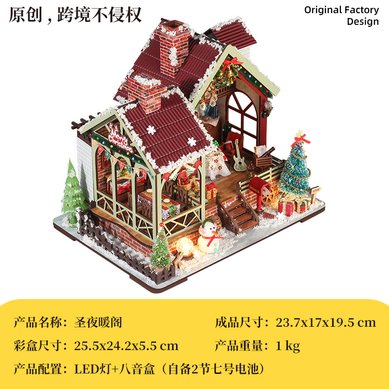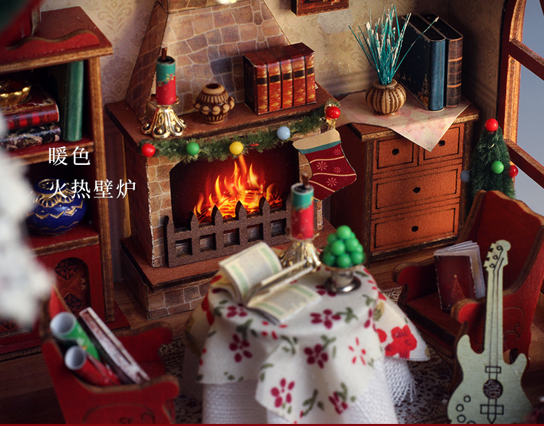 국경 간 DIY 캐빈 손으로 조립한 미니어처 하우스 성탄절 따뜻한 방 장면 모델 장난감 크리스마스 창조적 인 선물