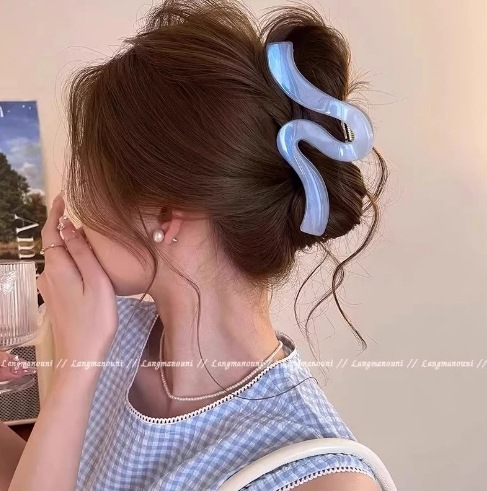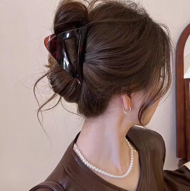 여성용 브라운 반투명 머리핀 2025 뒷머리용 새 스타일 머리핀, 대형 머리핀, 샤크핀 머리핀스토어 가기