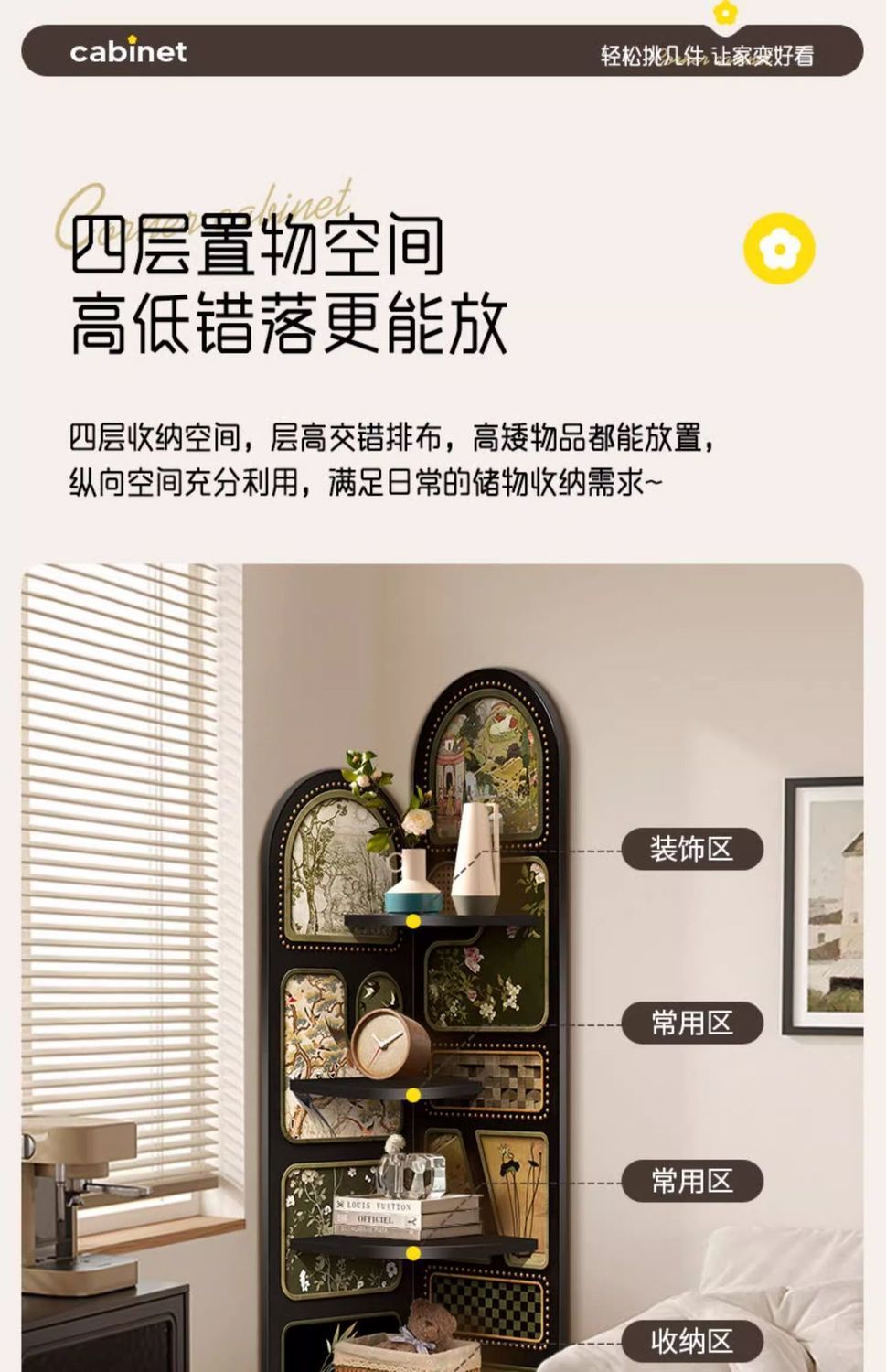 레트로 수납선반, 중세풍 코너장, 소파 옆 바닥 장식품, 소형 아파트 간격 삼각장, 프렌치 스타일