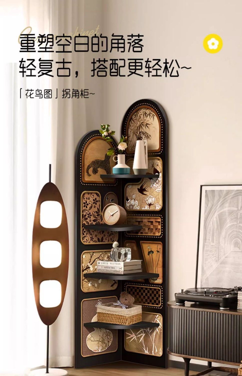 레트로 수납선반, 중세풍 코너장, 소파 옆 바닥 장식품, 소형 아파트 간격 삼각장, 프렌치 스타일스토어 가기