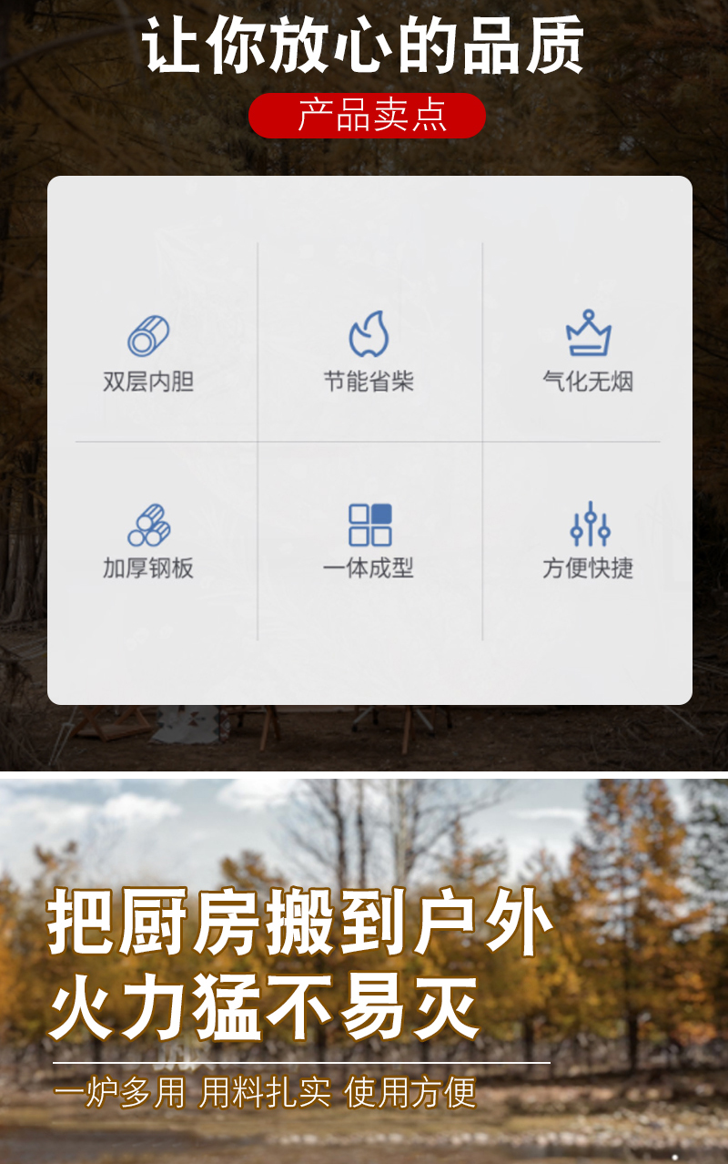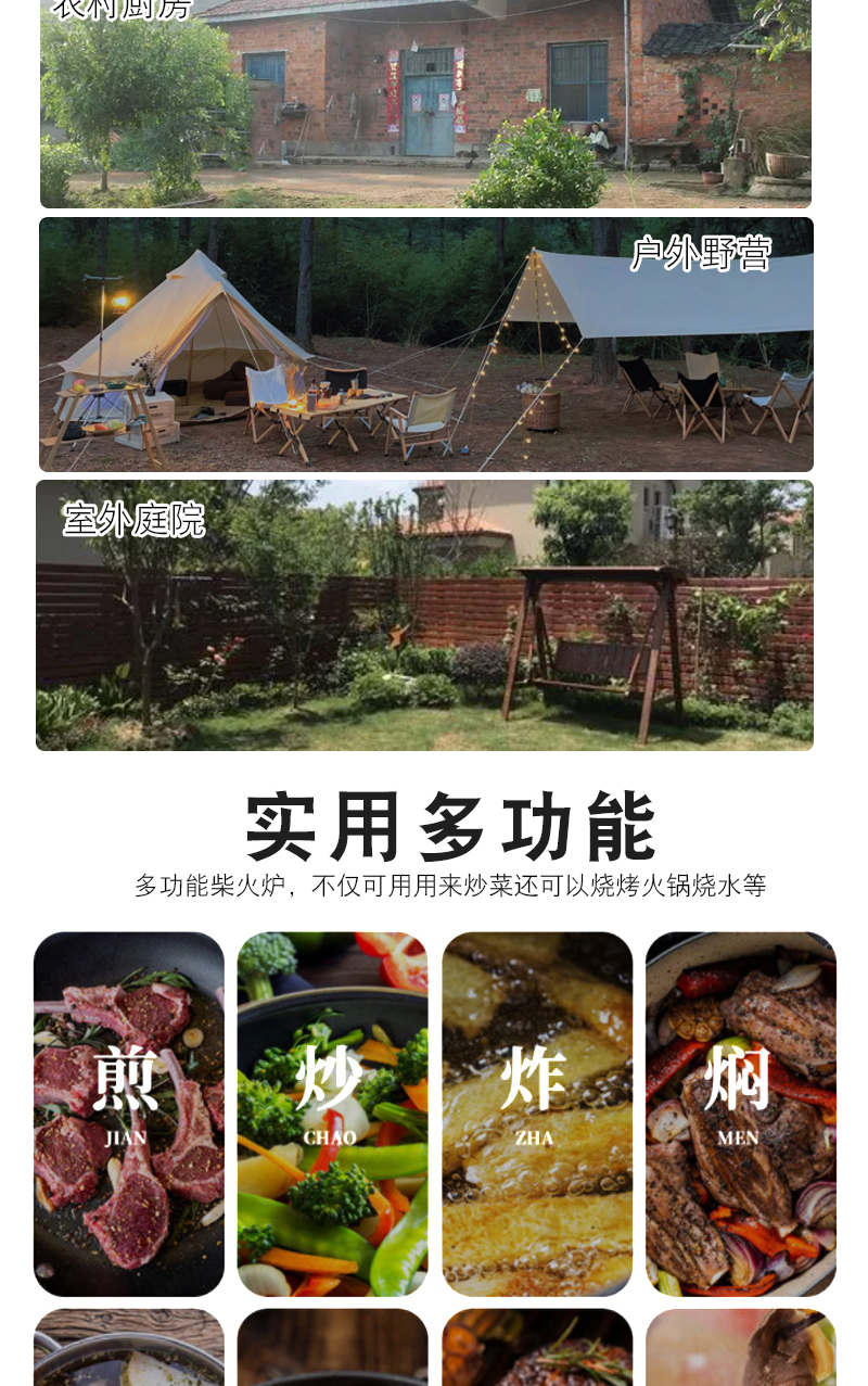 • 50개의 고정 다리 + Huoli 장작 및 석탄 이중 용도