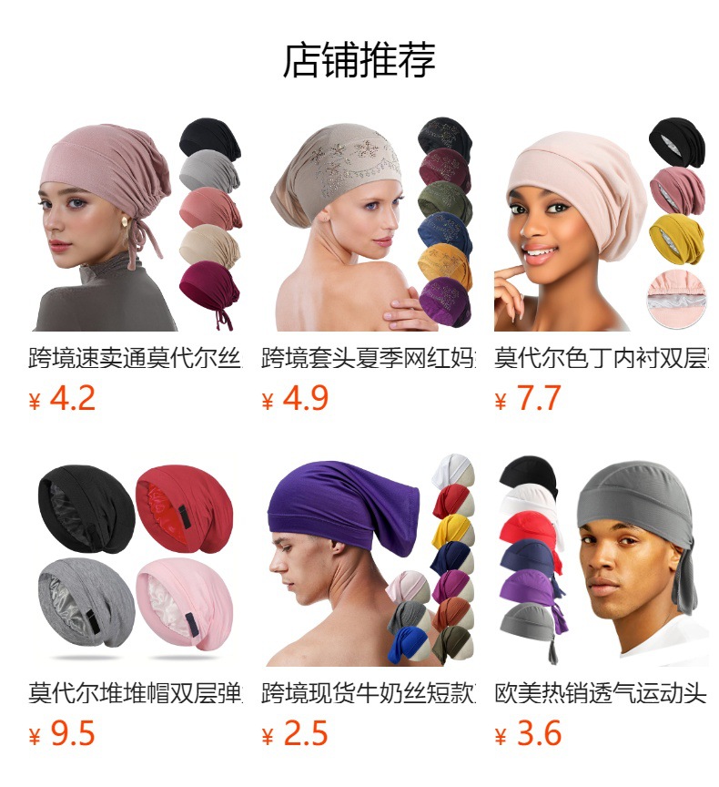 크로스보더 모달 스트레치 원단 리본 장식 베이스 모자, 에스닉 스타일 헤드 스카프, 인기 판매 중인 단색 스트랩스토어 가기