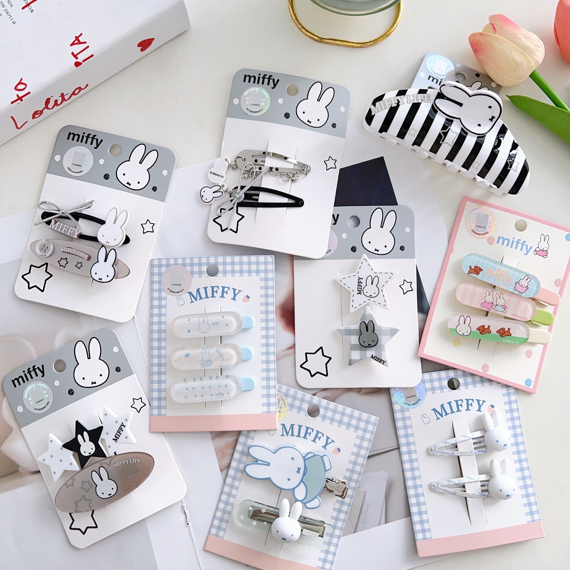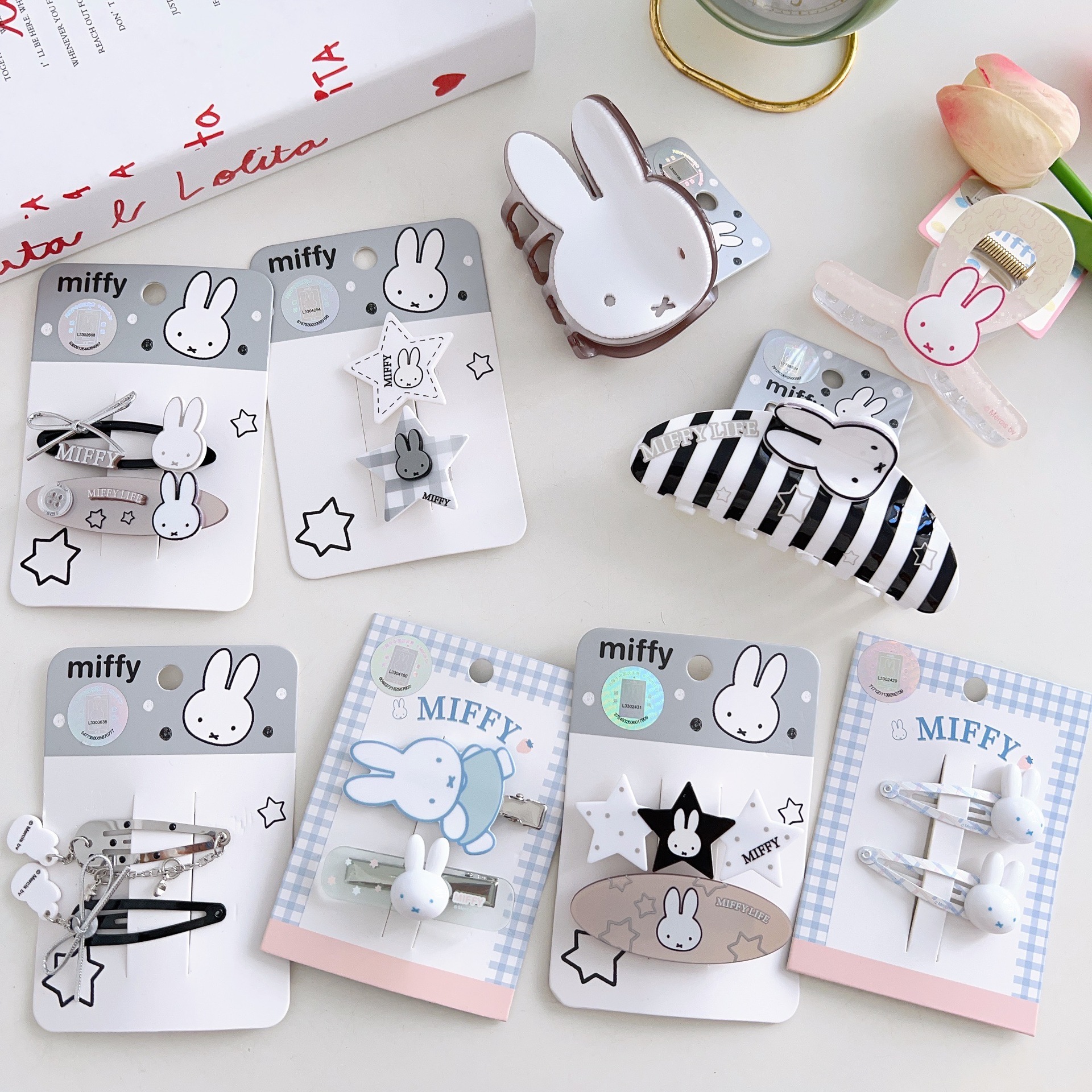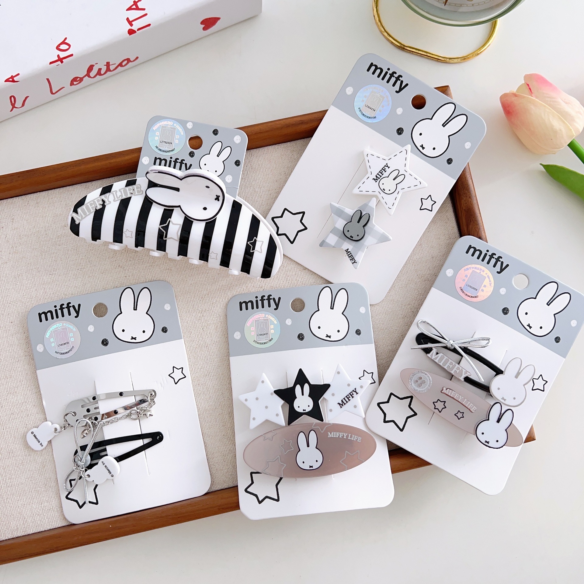 한국식 달콤하고 시원한 미피토끼 시리즈 머리핀, 별머리 앞머리핀, 스트라이프 그립클립, 사이드클립, 학생모자