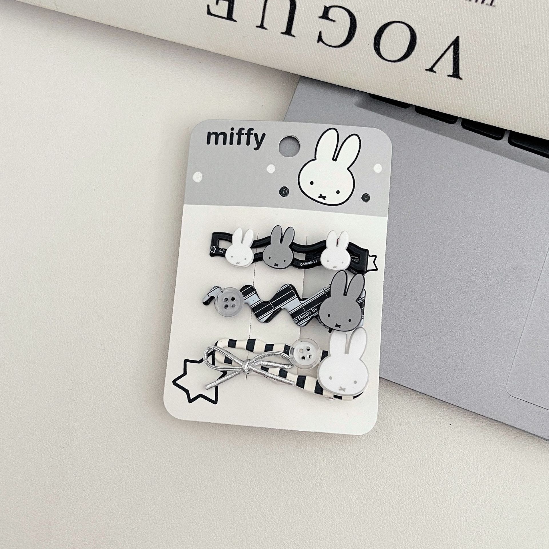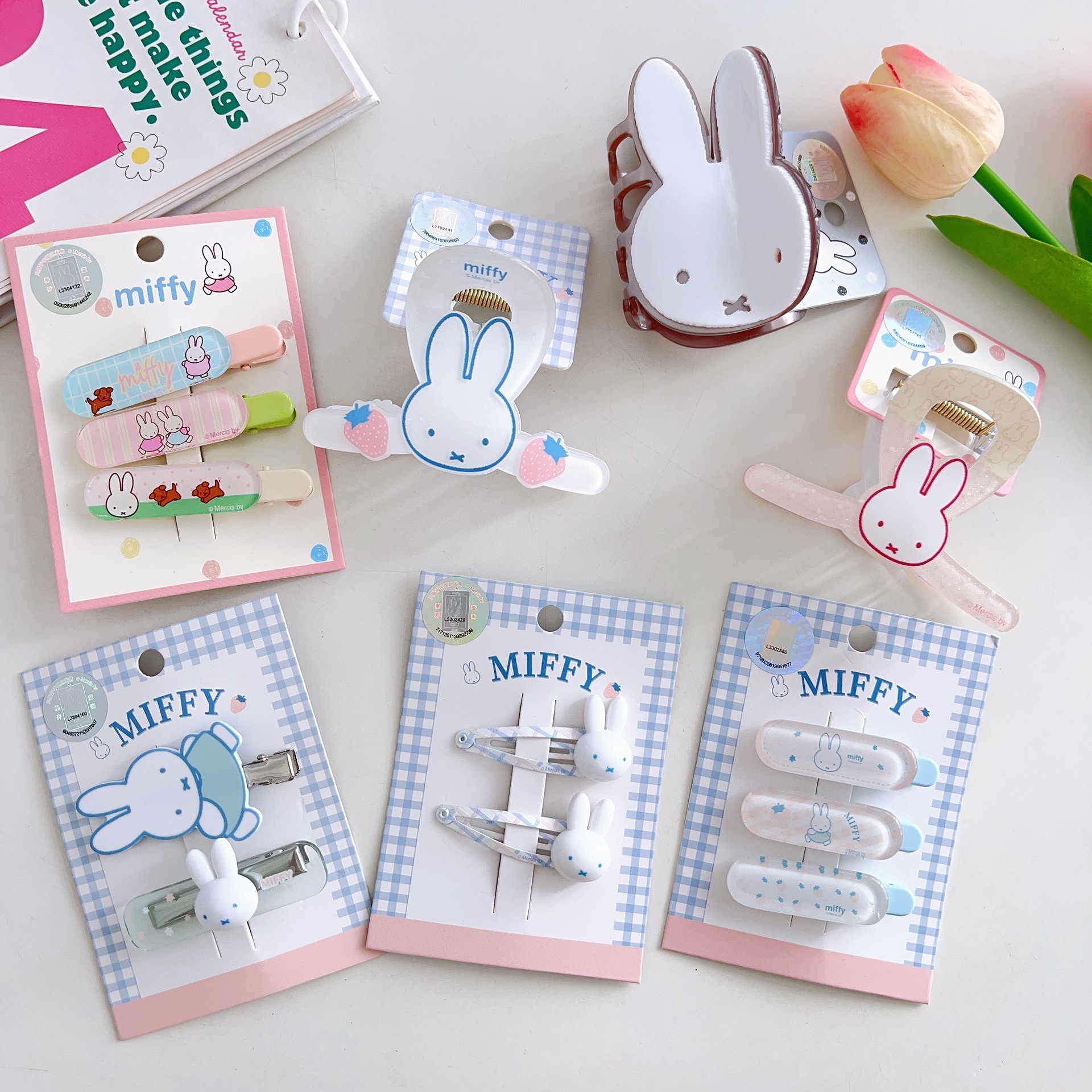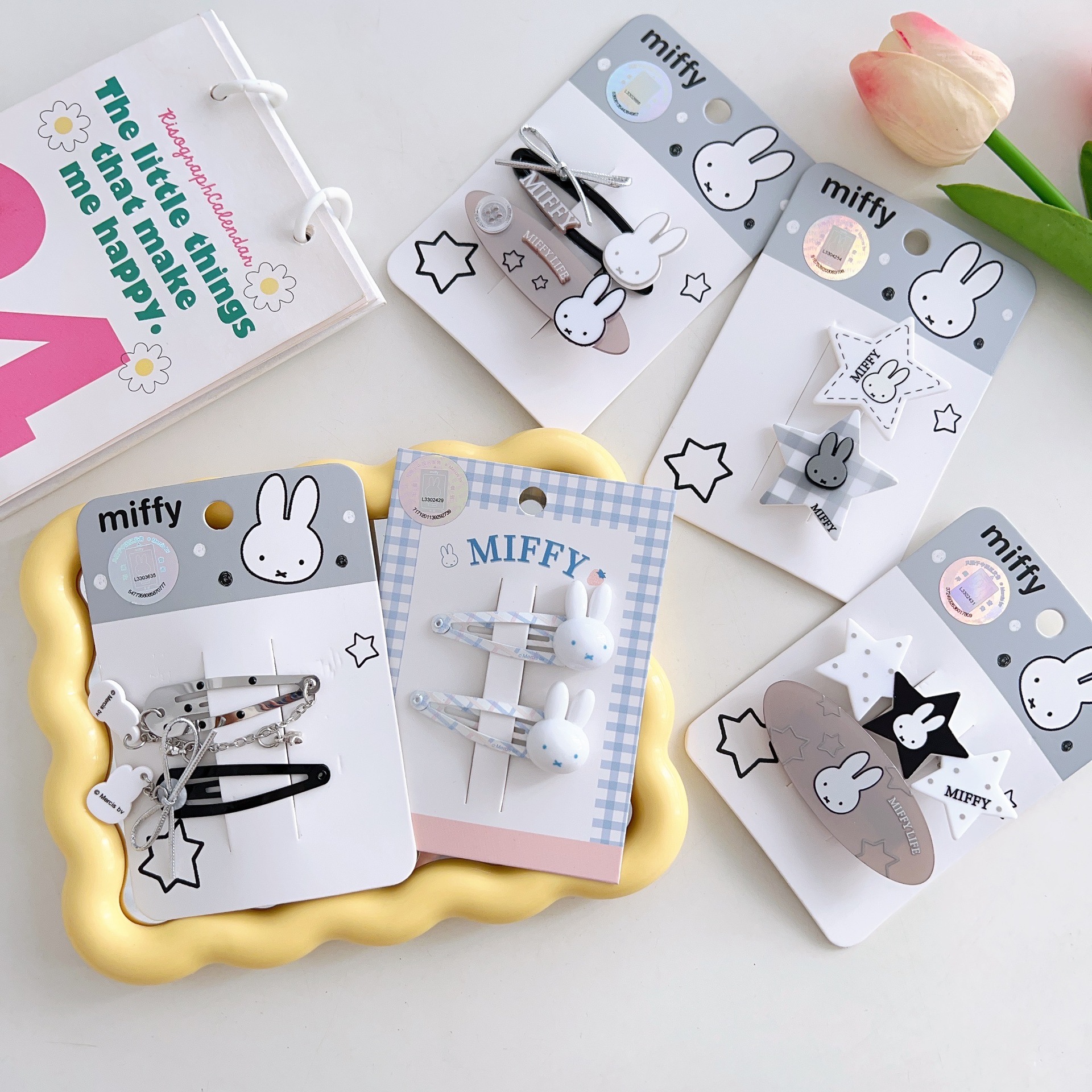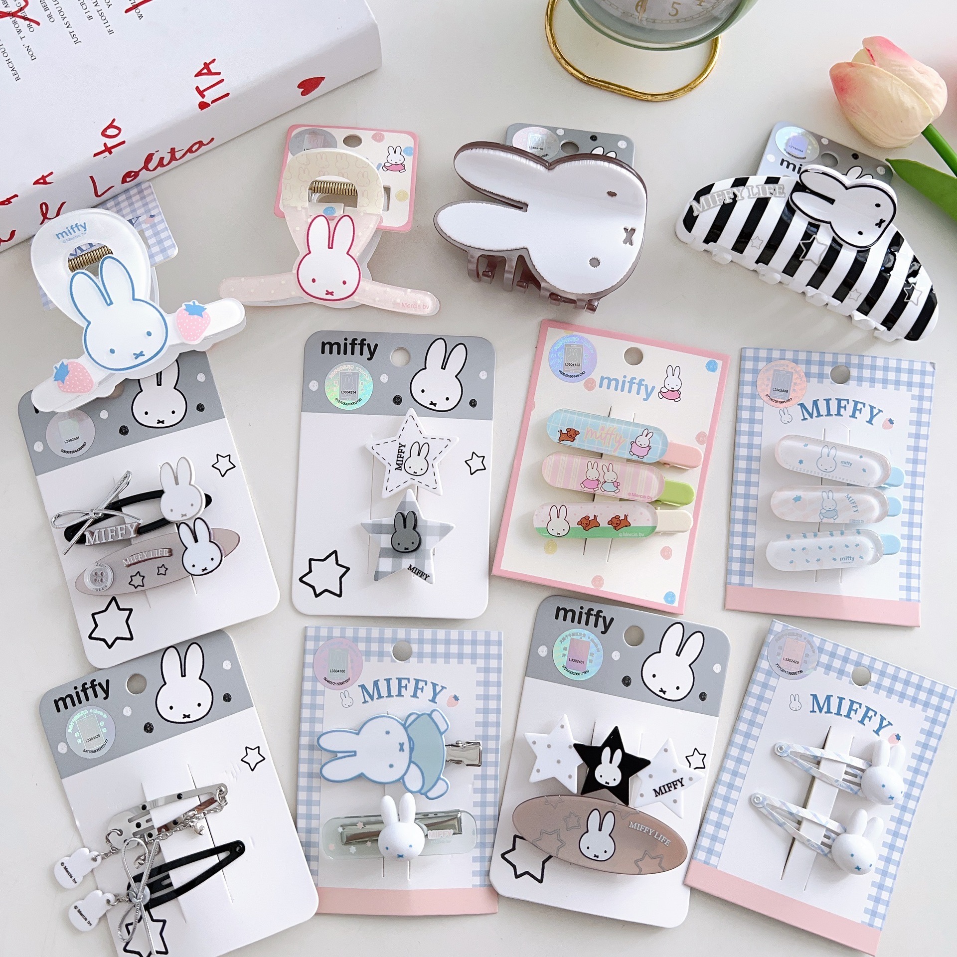 한국식 달콤하고 시원한 미피토끼 시리즈 머리핀, 별머리 앞머리핀, 스트라이프 그립클립, 사이드클립, 학생모자