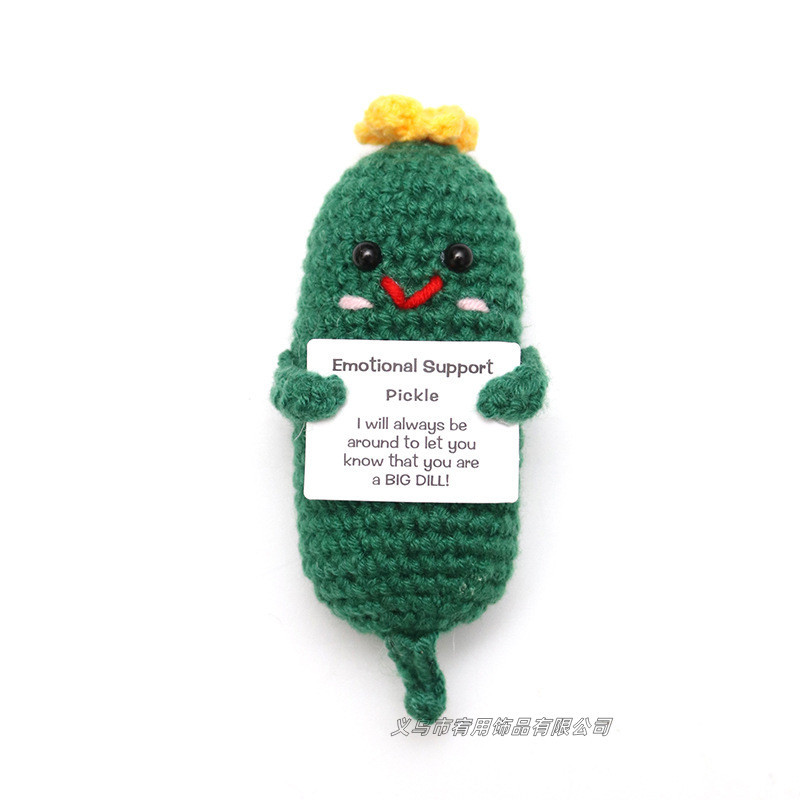 손으로 뜨개질한 오이 양모로 뜨개질한 오이 니트 야채 및 과일 인형 펜던트 긍정적인 에너지 이모티콘 장식품스토어 가기