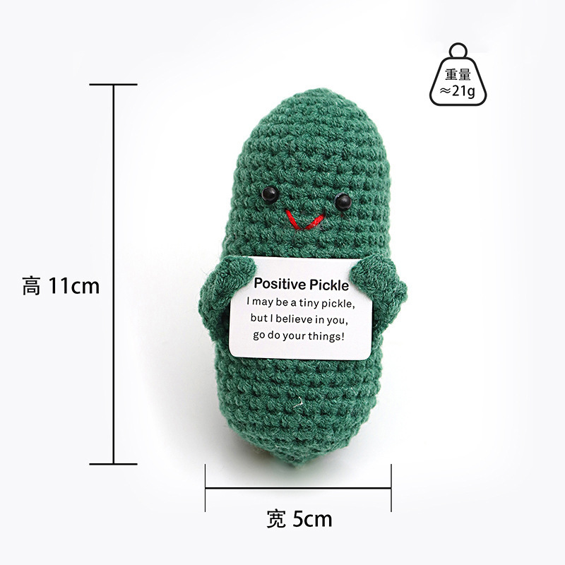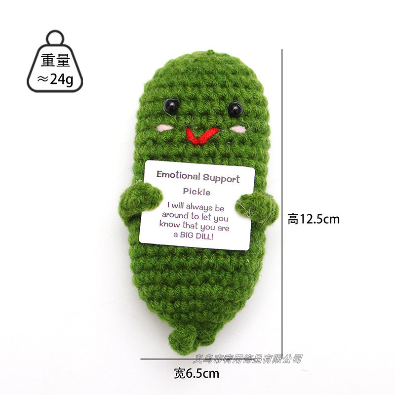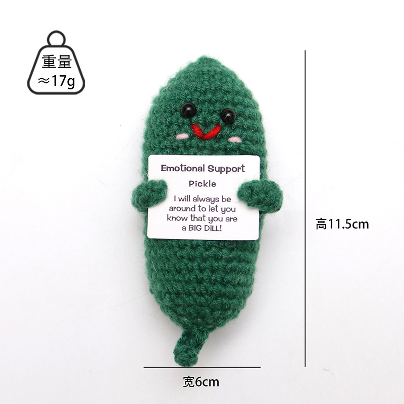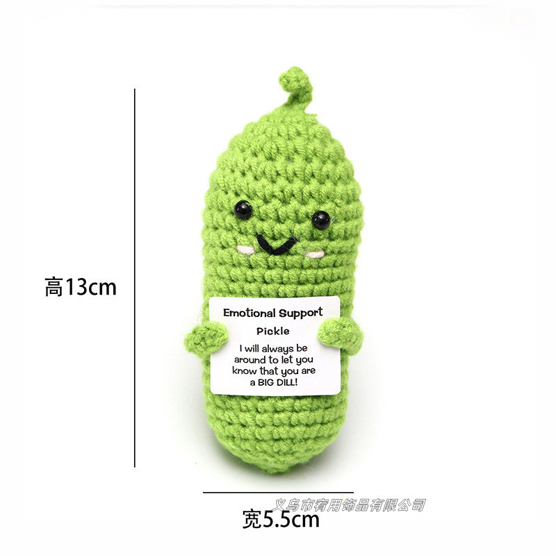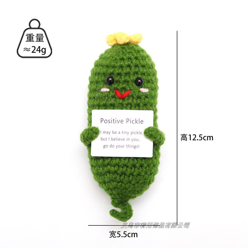 손으로 뜨개질한 오이 양모로 뜨개질한 오이 니트 야채 및 과일 인형 펜던트 긍정적인 에너지 이모티콘 장식품