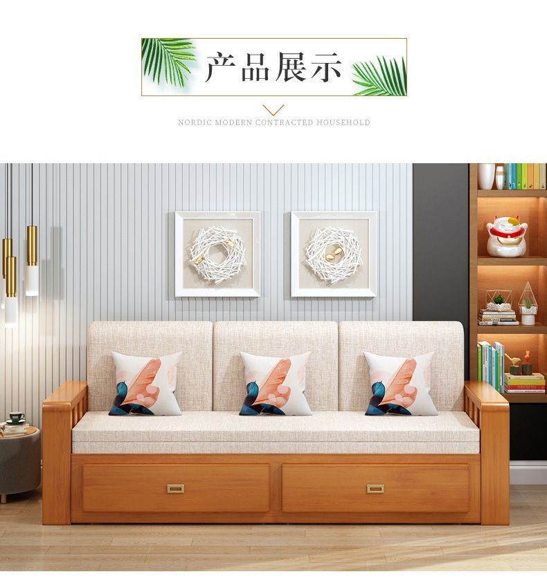 원목 소파 베드, 원목 수납형, 접이식, 거실, 다기능 접이식 소파 베드, 겸용 소형 아파트스토어 가기