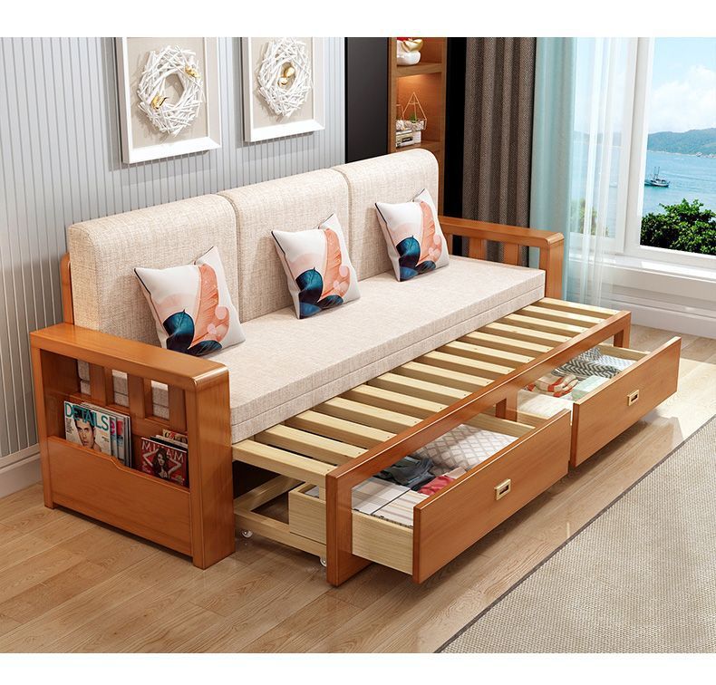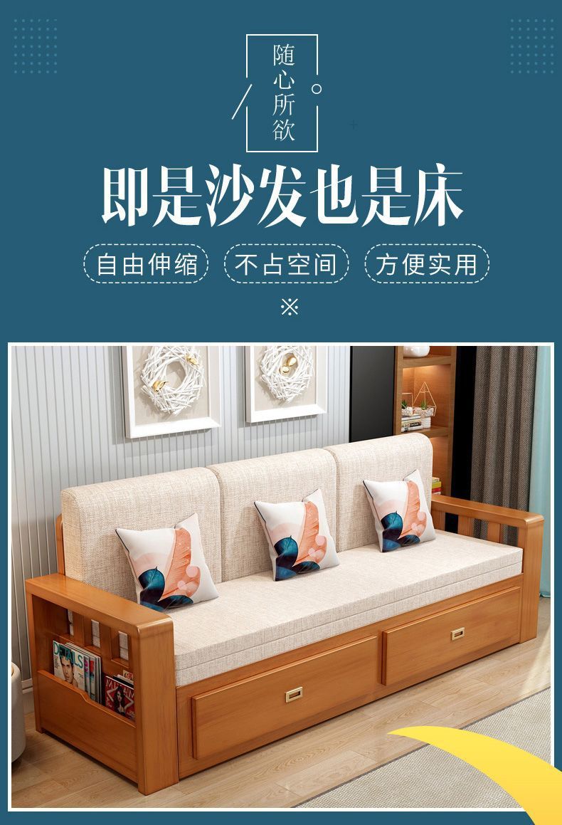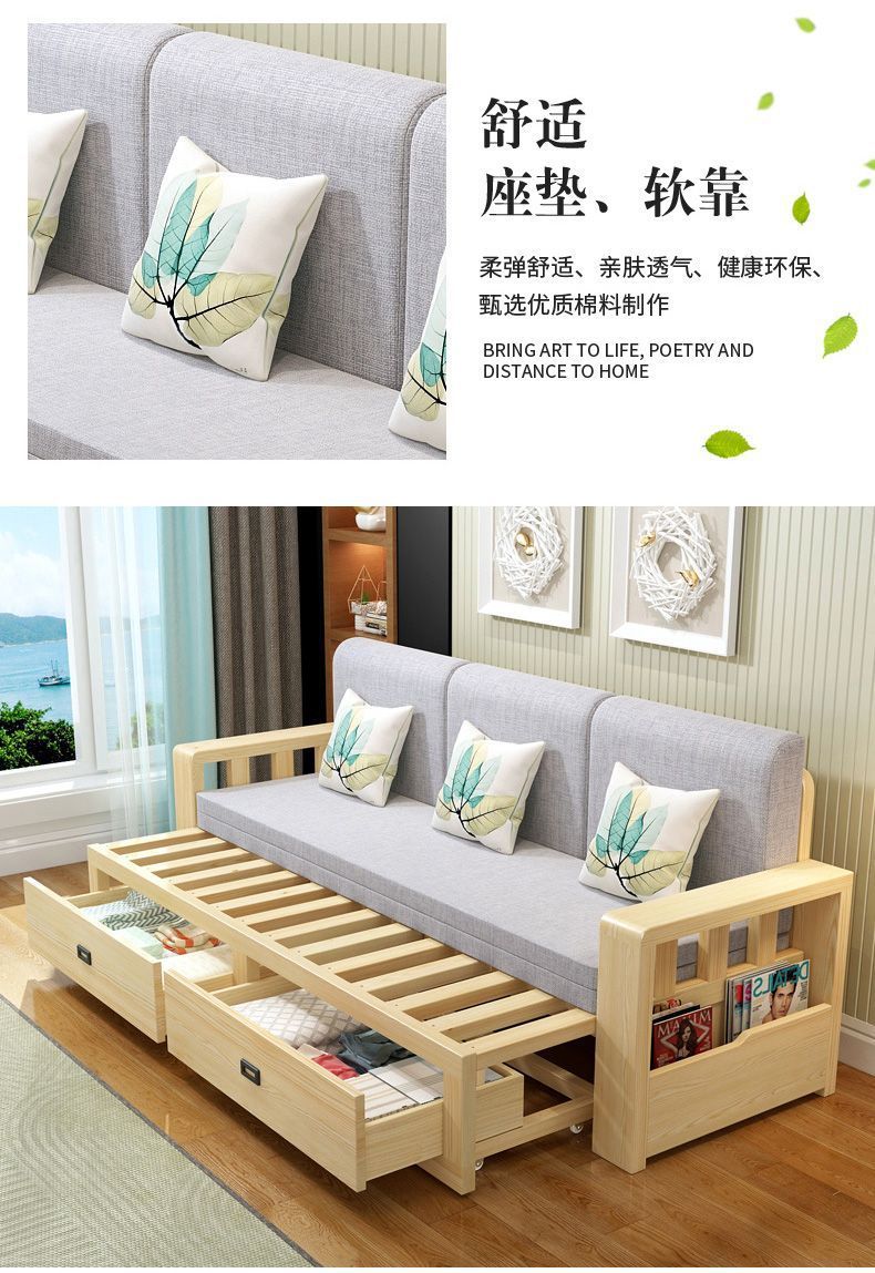 원목 소파 베드, 원목 수납형, 접이식, 거실, 다기능 접이식 소파 베드, 겸용 소형 아파트
