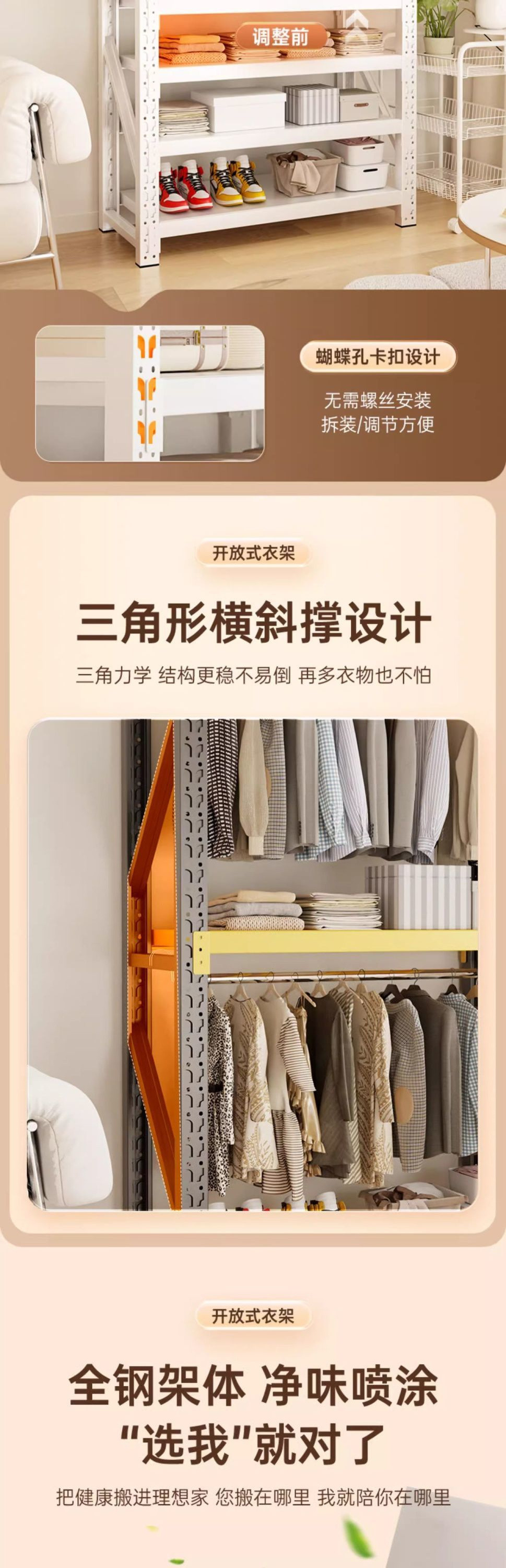 강철 코트 랙, 나비 구멍 선반, 조합 옷장, 가정용 개방형 간이 옷걸이, 철제 바닥 스토리지 랙