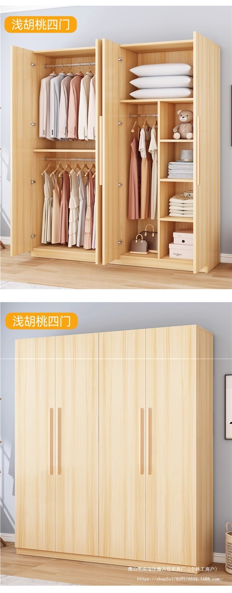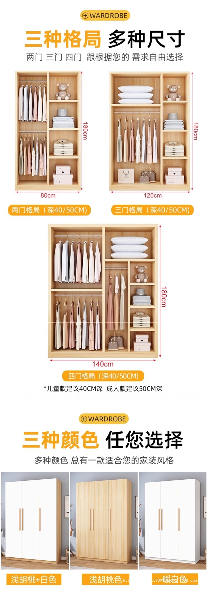 옷장 가정용 침실 임대 간단한 조립 경제적 인 단단한 나무 어린이 작은 아파트 보관 캐비닛 옷장