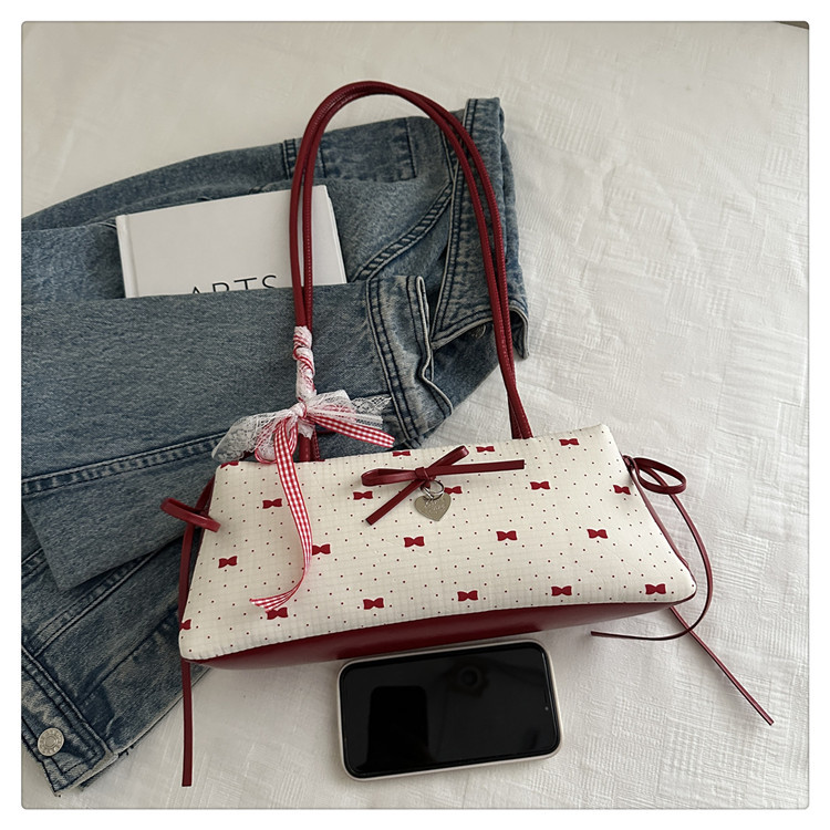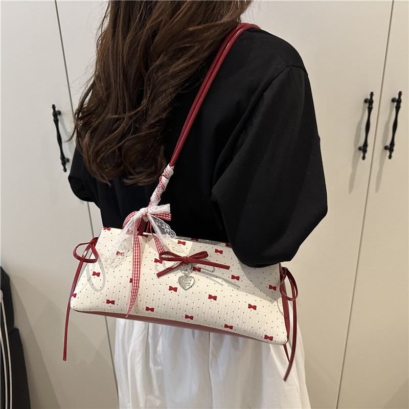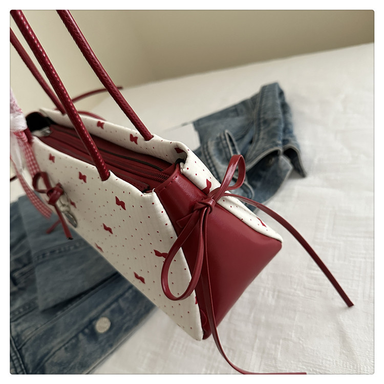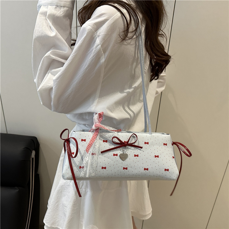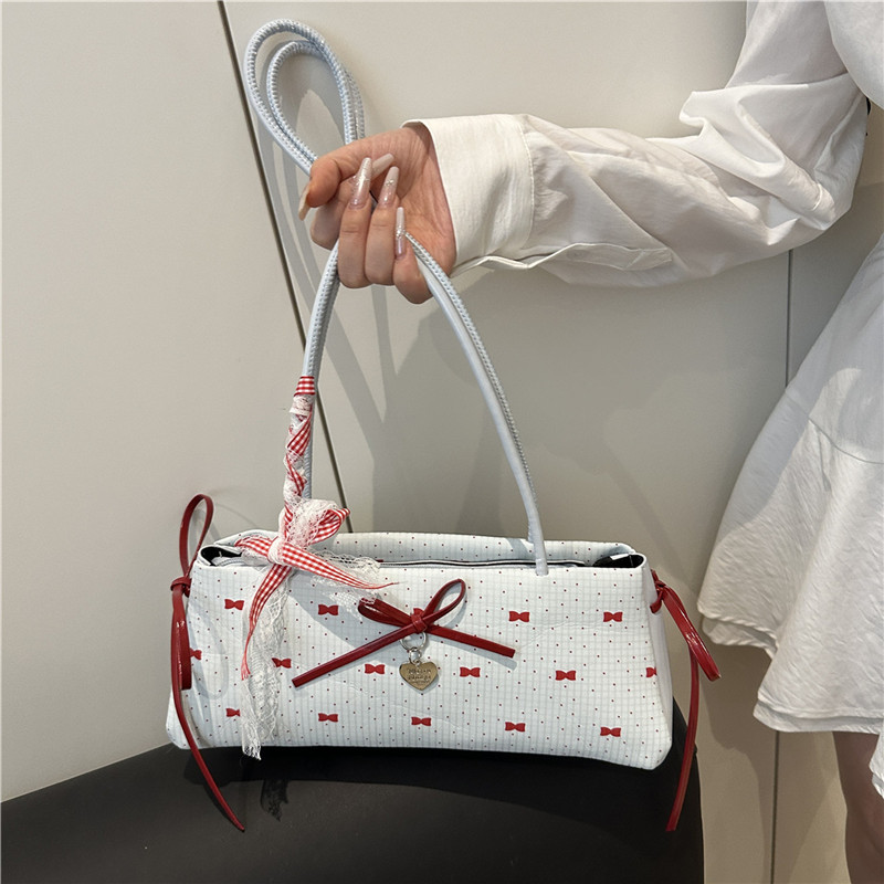 여름 새로운 패션 달콤한 소녀 겨드랑이 가방 여성 귀여운 대비 색상 Bowknot 다목적 캐주얼 어깨 가방스토어 가기