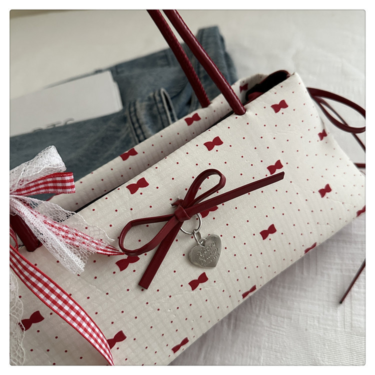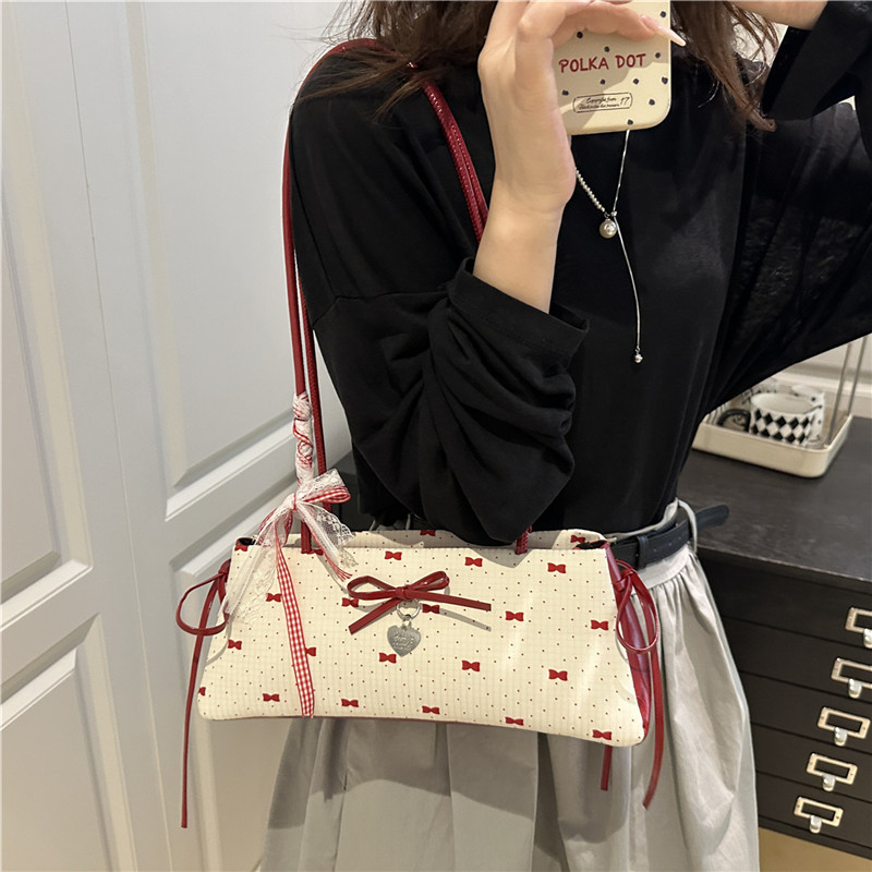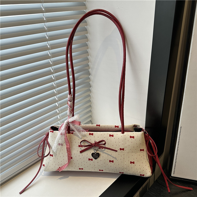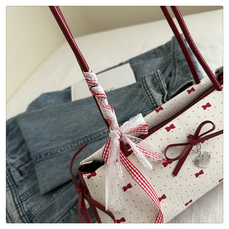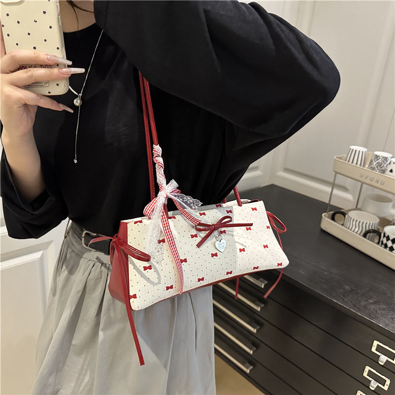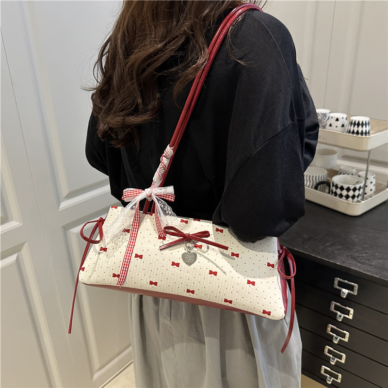 여름 새로운 패션 달콤한 소녀 겨드랑이 가방 여성 귀여운 대비 색상 Bowknot 다목적 캐주얼 어깨 가방스토어 가기