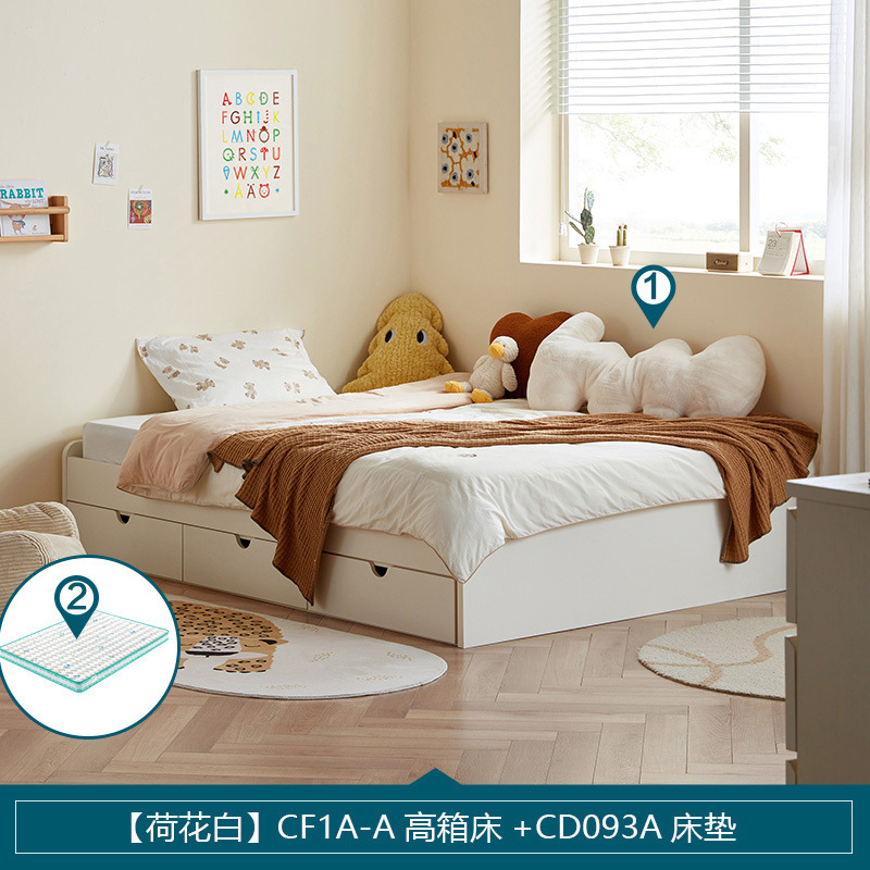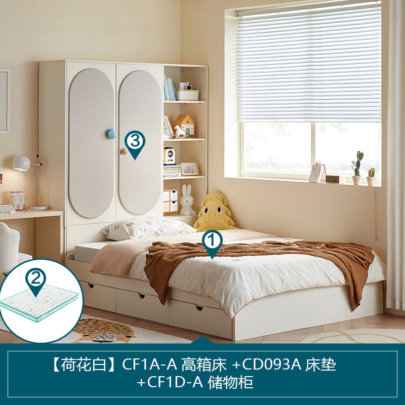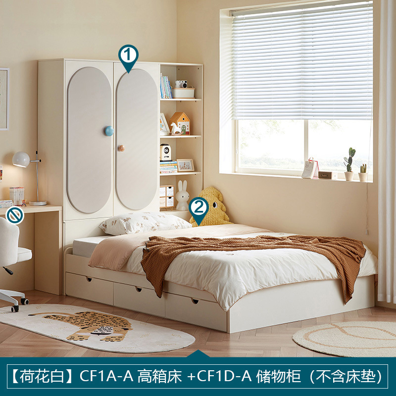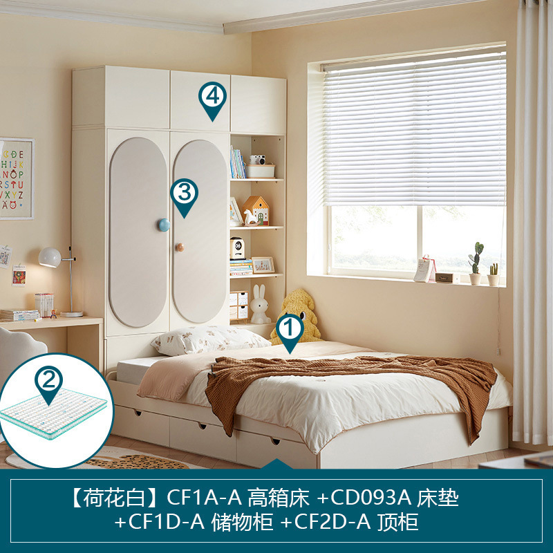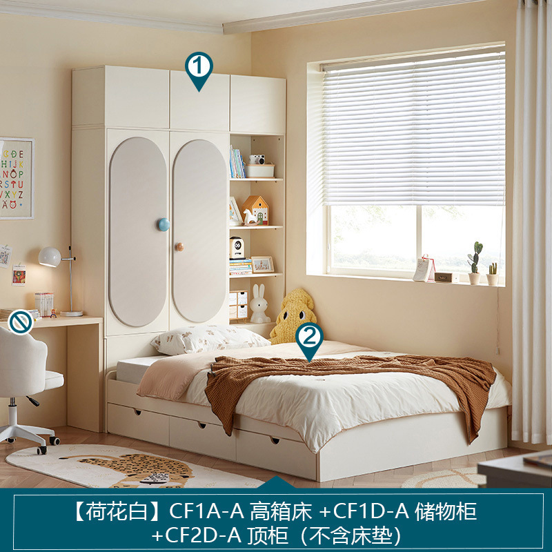 • 높은 박스 침대 + 수납 캐비닛 + 상단 캐비닛
