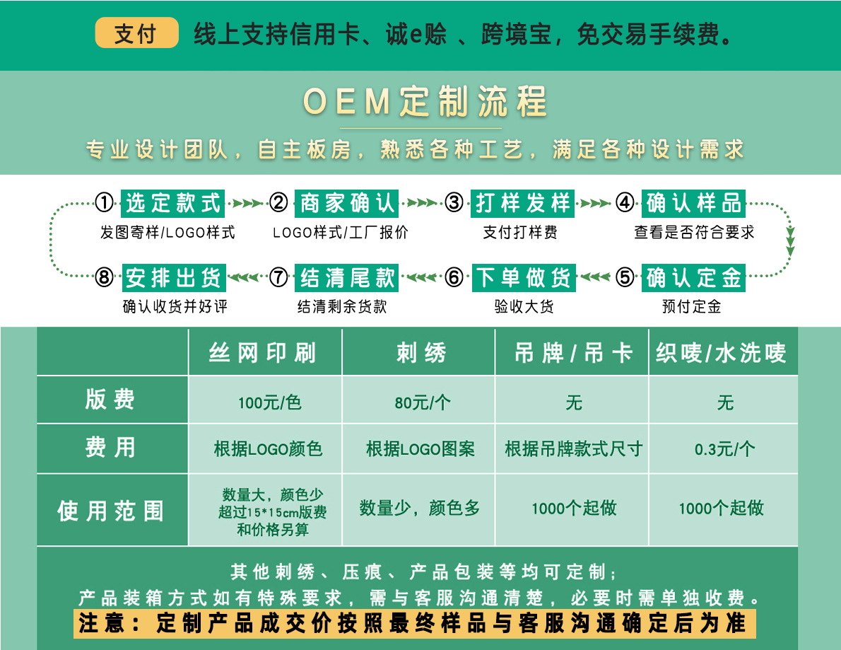 定制报价请提供具体的信息(面料、尺寸、条码标签、包装要求),请点击进入定制咨询专享链接了解基本我厂可提供的免费服务。