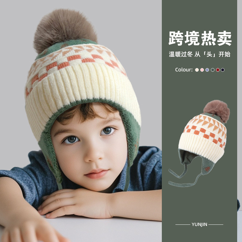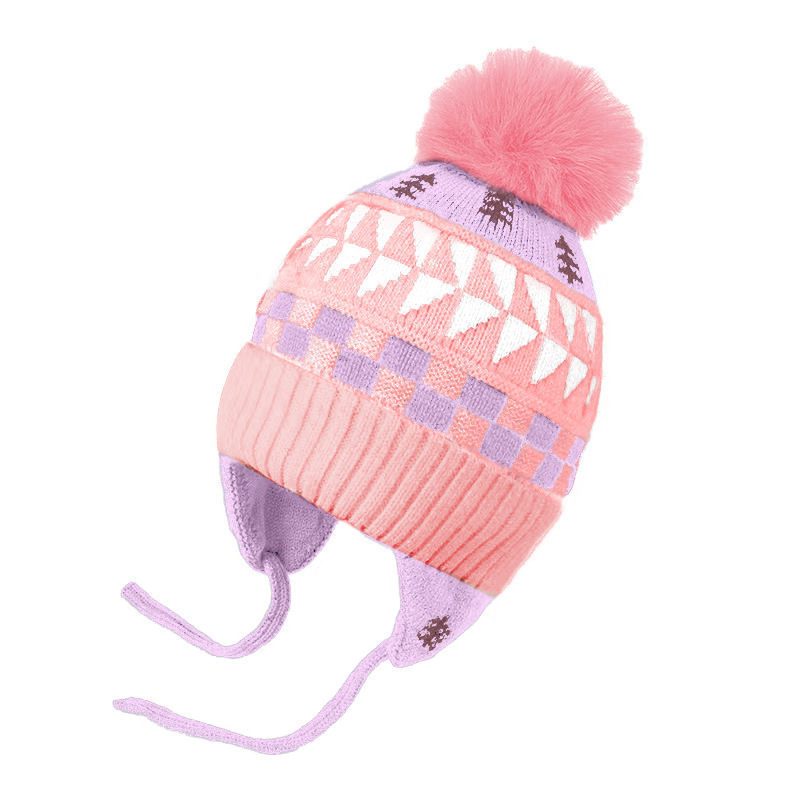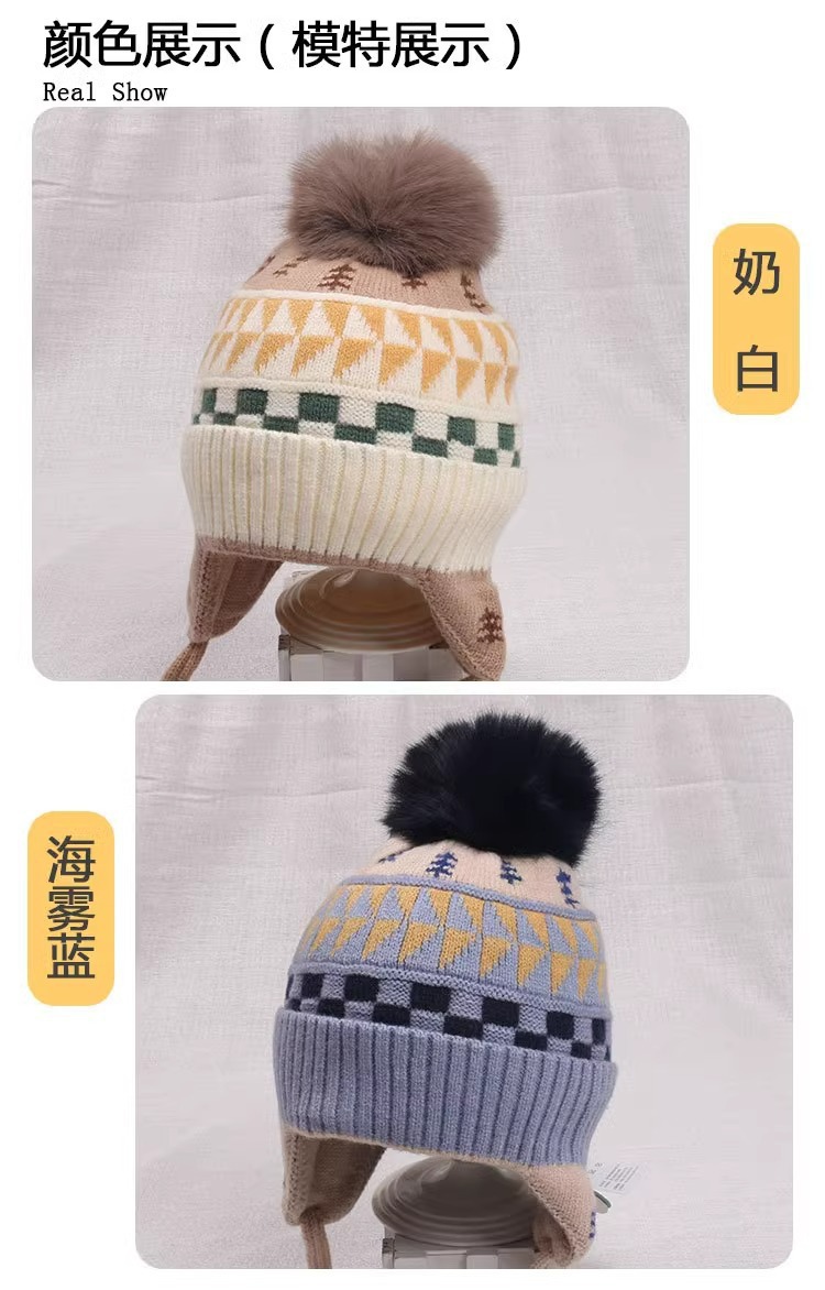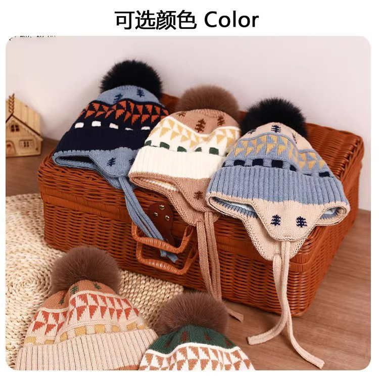 아기 모자 귀 보호 모자 가을, 겨울 새로운 귀여운 모피 공 모자 소녀와 소년 두꺼운 어린이 따뜻한 모자 유행
