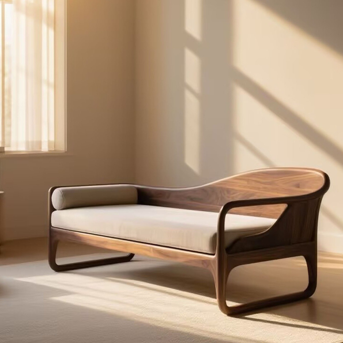 새로운 중국 스타일의 검은 호두 나무 긴 의자 선명한 간단한 단단한 나무 Arhat 침대 긴 의자 침실 작은 아파트 소파 침대