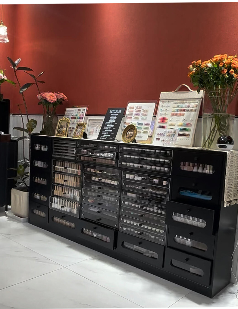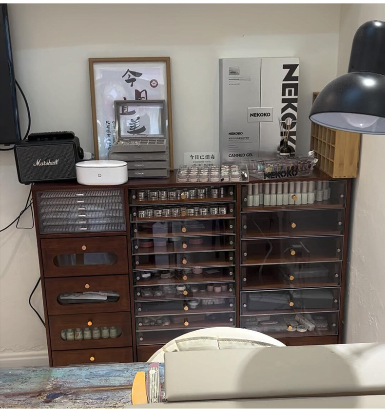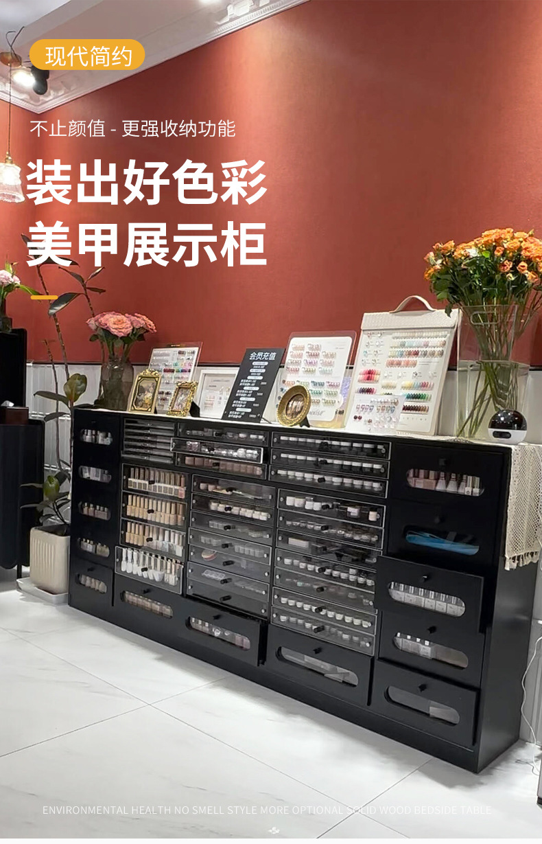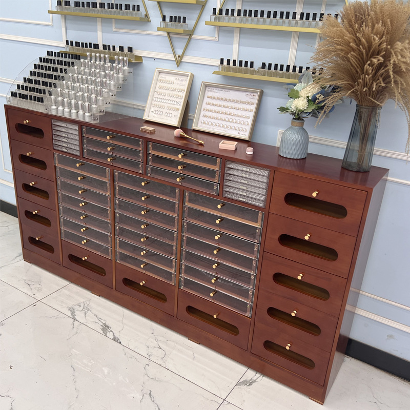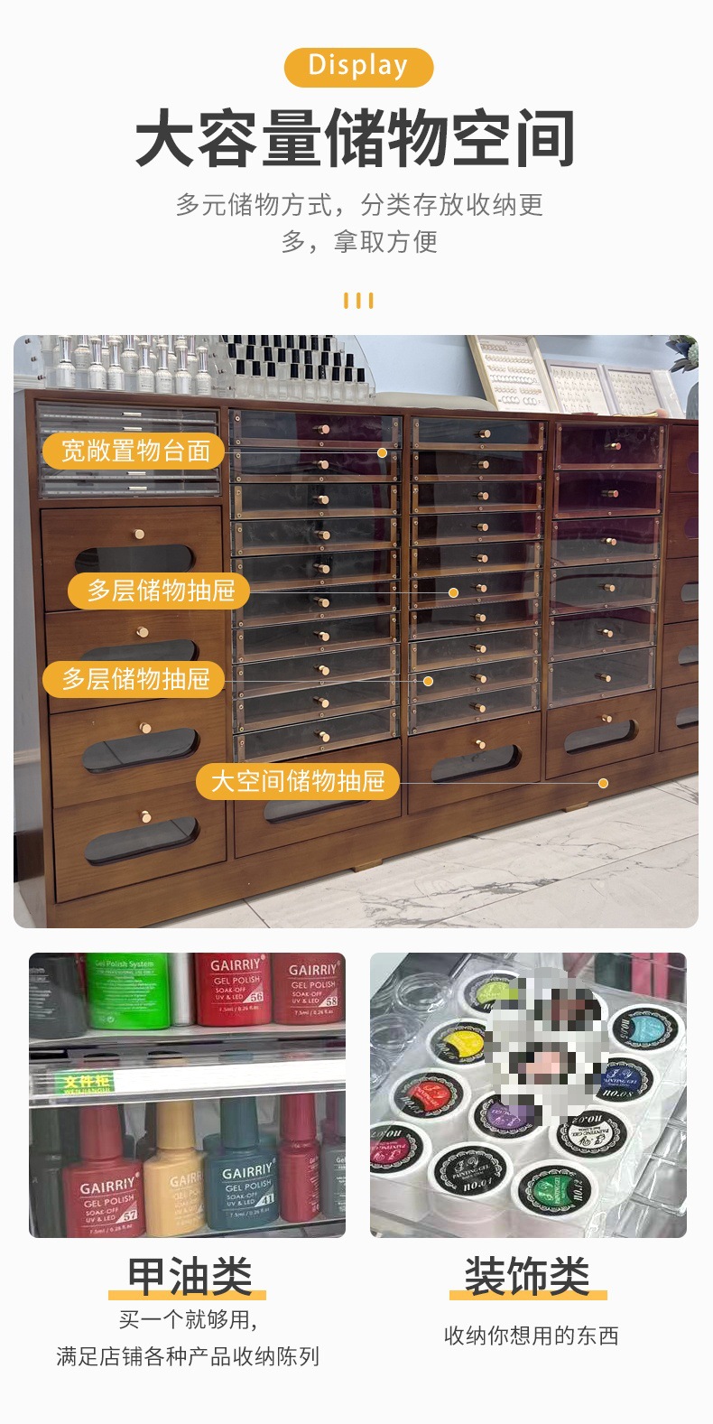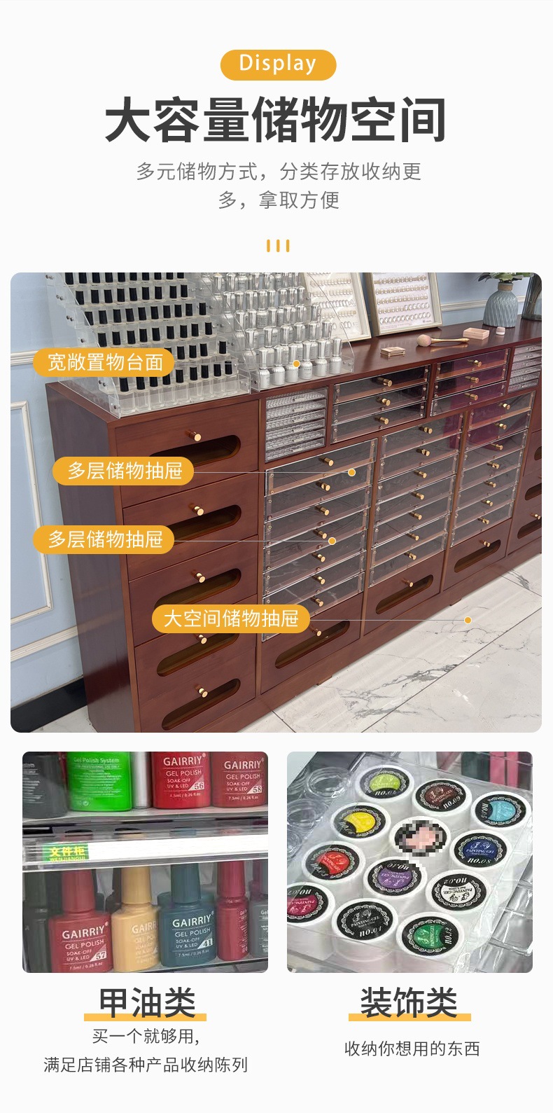 단단한 나무 중세 스타일 매니큐어 캐비닛 디스플레이 캐비닛 매니큐어 보관 캐비닛 매니큐어 접착제 보관 캐비닛 네일 살롱 플로어 스탠딩
