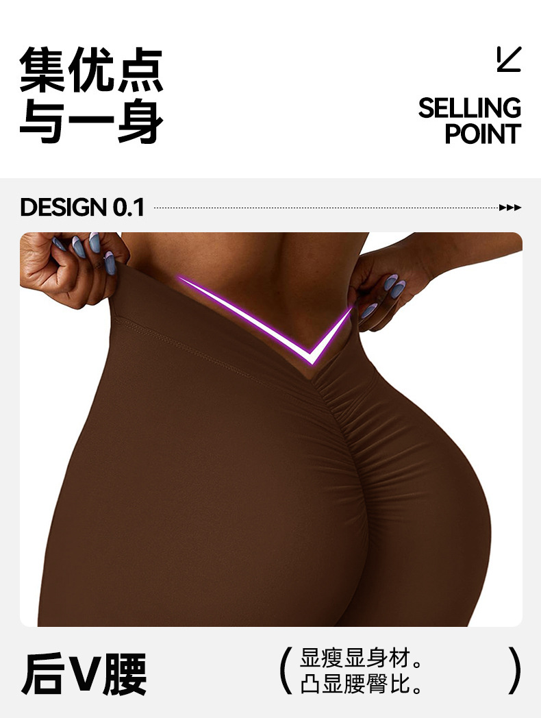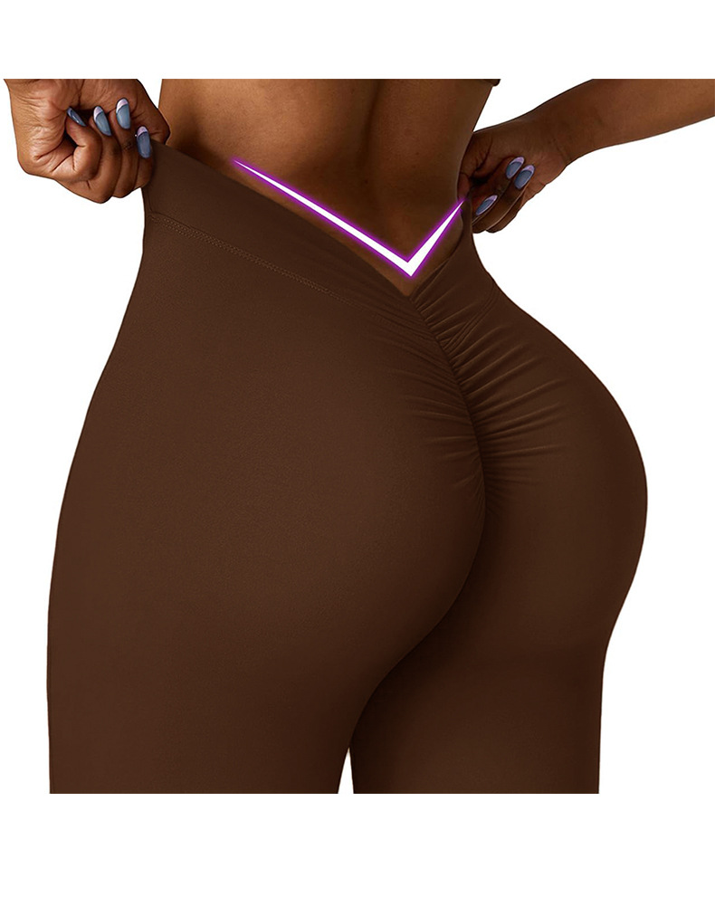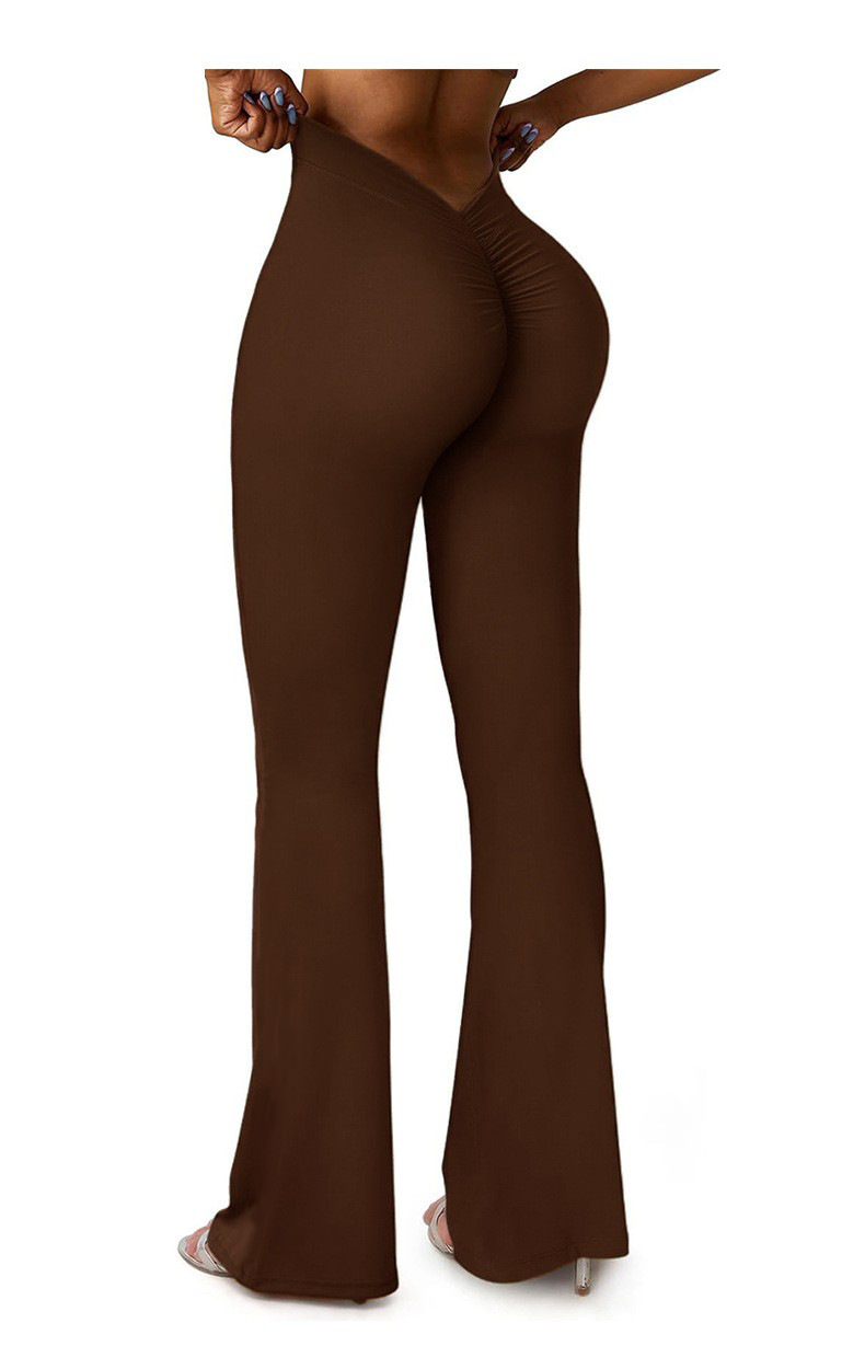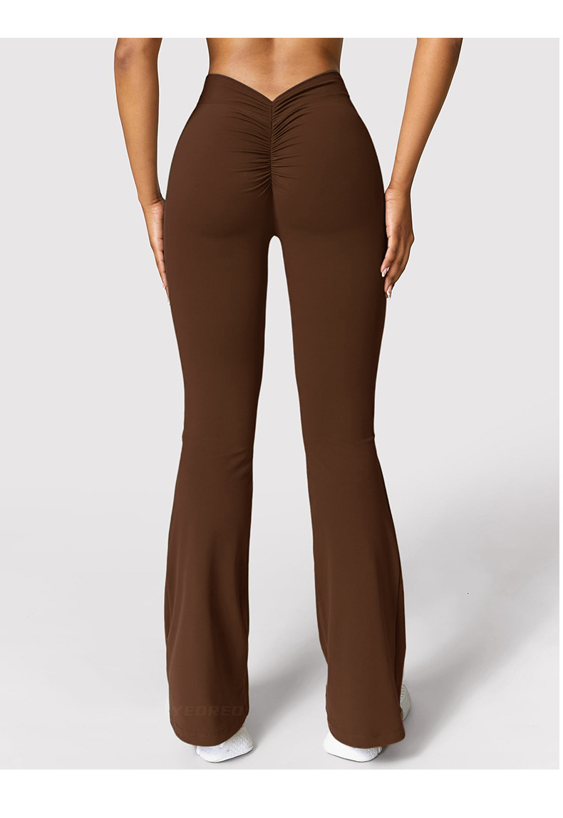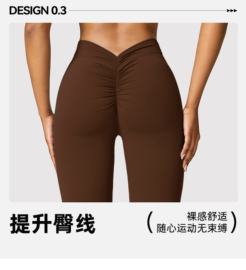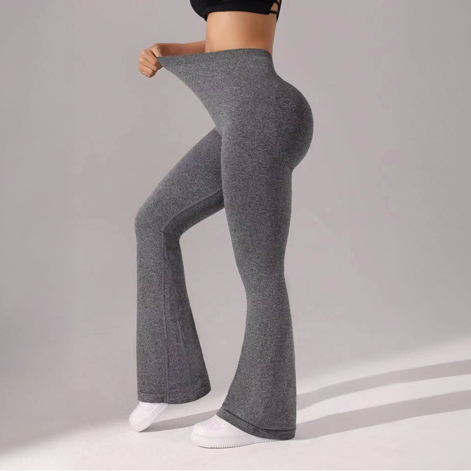유럽과 미국의 이음매없는 탄성 속건성 통기성 요가 바지 V 허리 엉덩이 리프팅 허리 야외 피트니스 스포츠 마이크로 플레어 바지