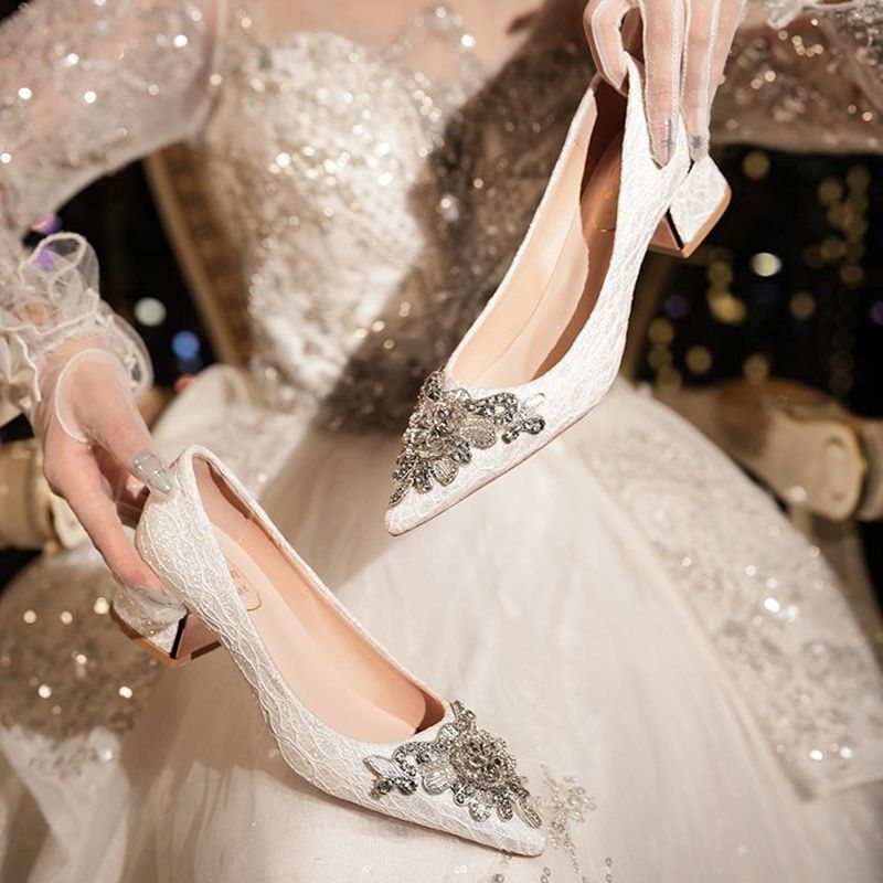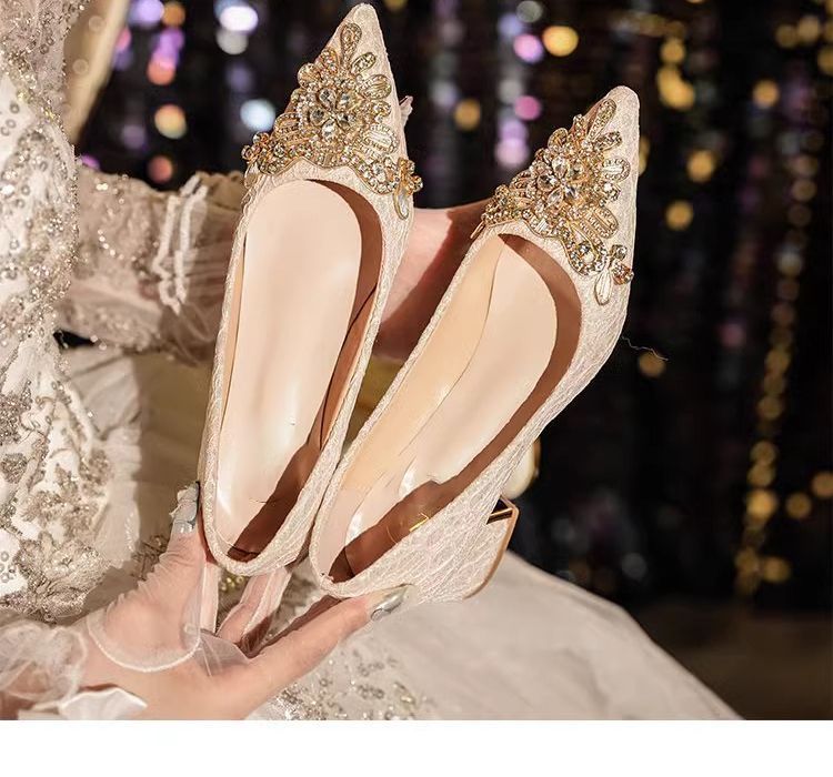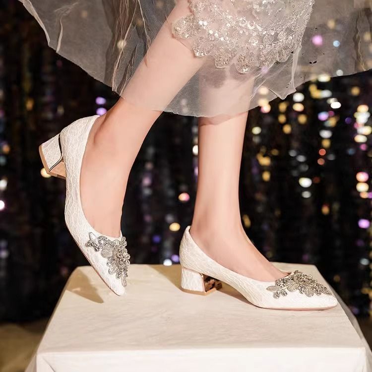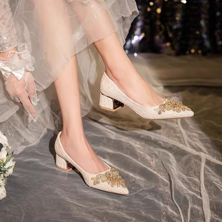 여성을위한 세련되고 다재다능한 연회 라인 석 기질 하이힐 2025 봄 여름 여성을위한 새로운 틈새 고급 두꺼운 굽 웨딩 슈즈스토어 가기