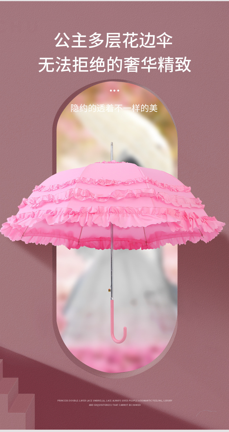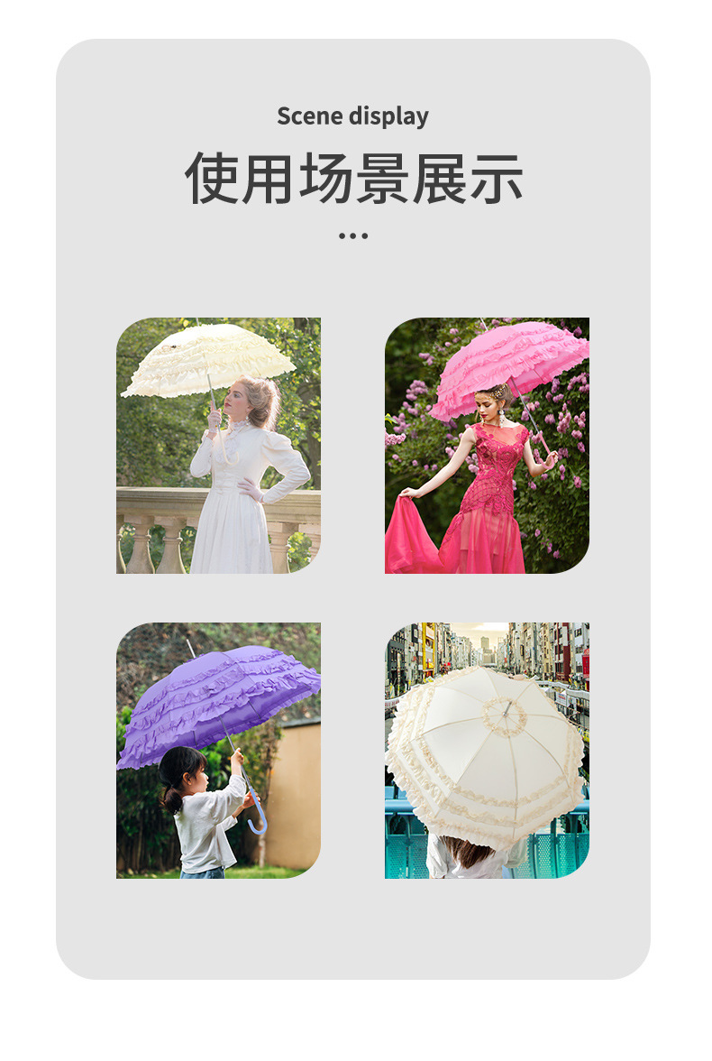 로리타 레이스 파라솔 우산, 비 또는 빛, 직선 우산, 자외선 차단, 자외선 차단, 공주 우산, 도매 재고 있음스토어 가기