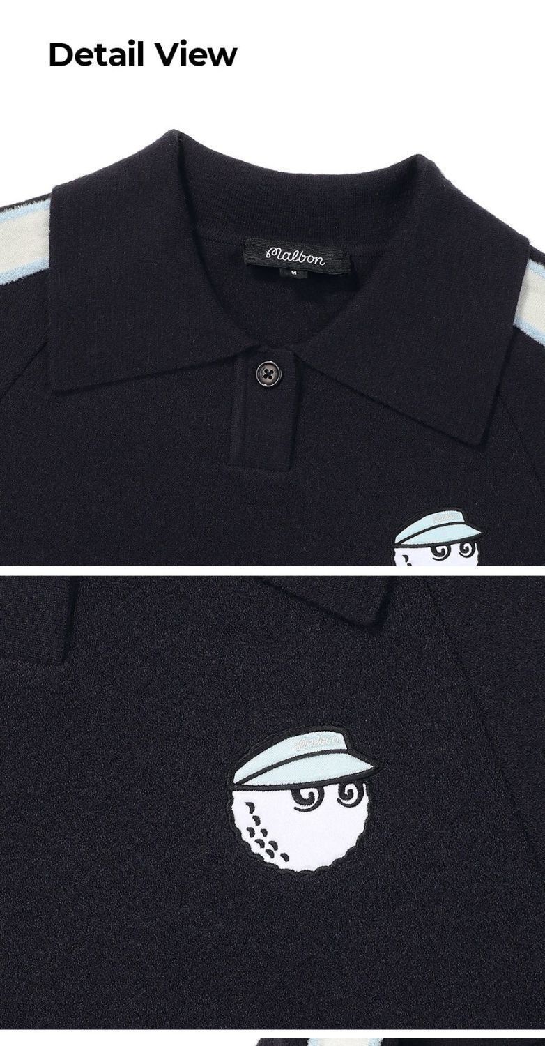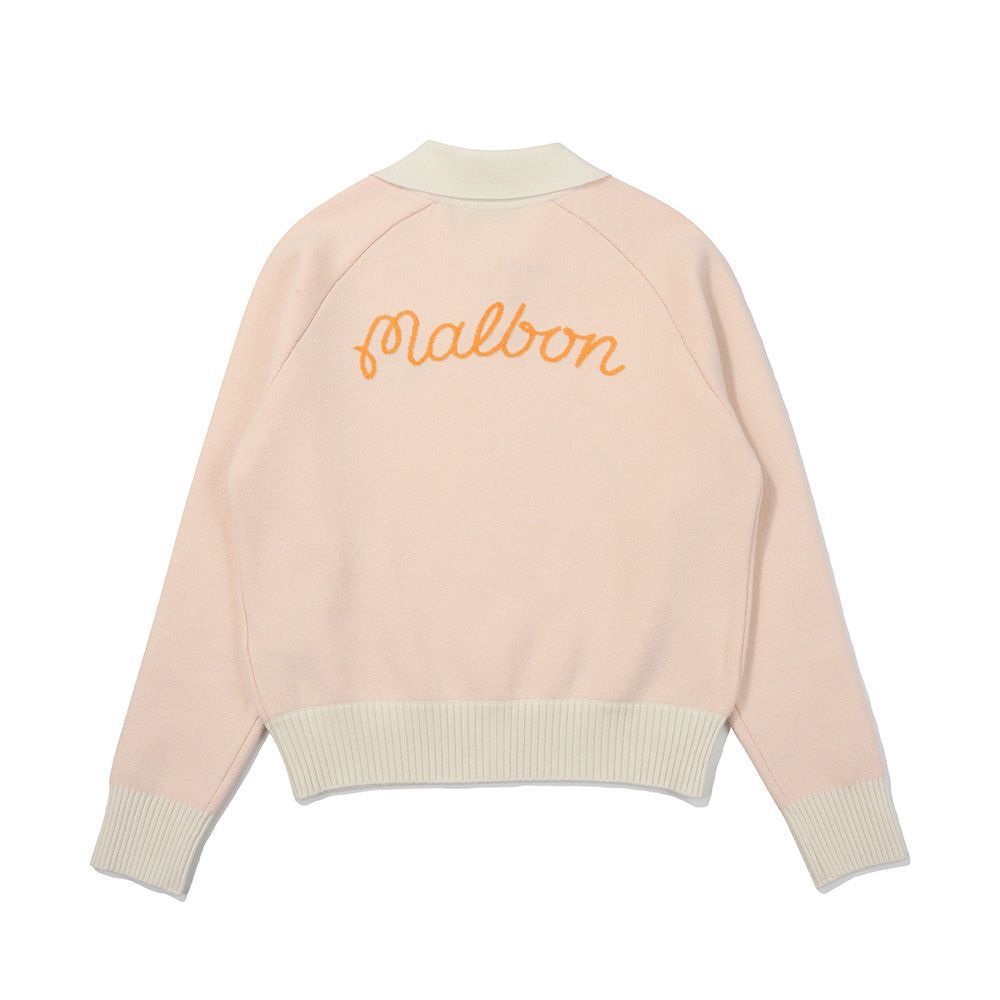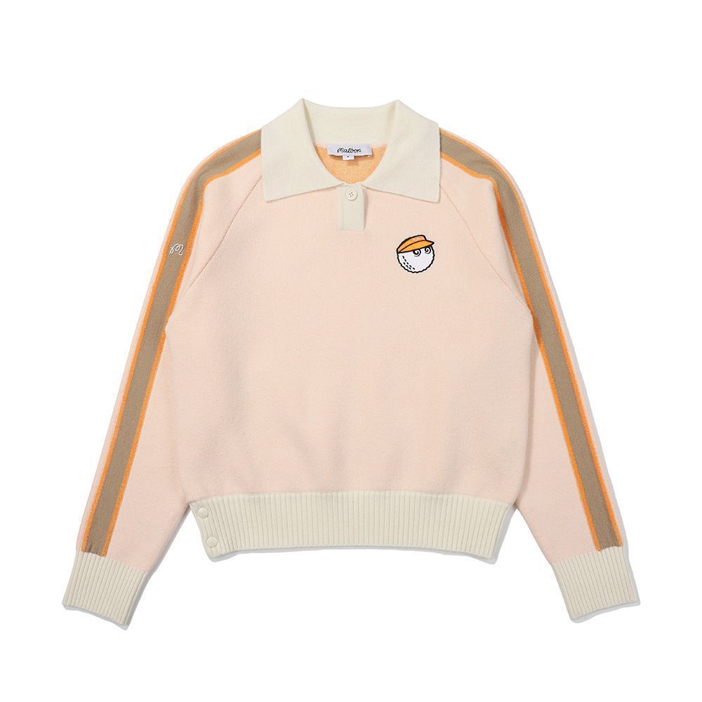 한국 골프웨어 24세 여성 가을 겨울 배색 로고 패턴 버튼 라펠 스웨터 루즈한 긴팔
