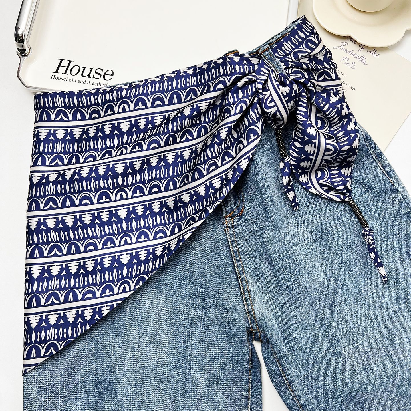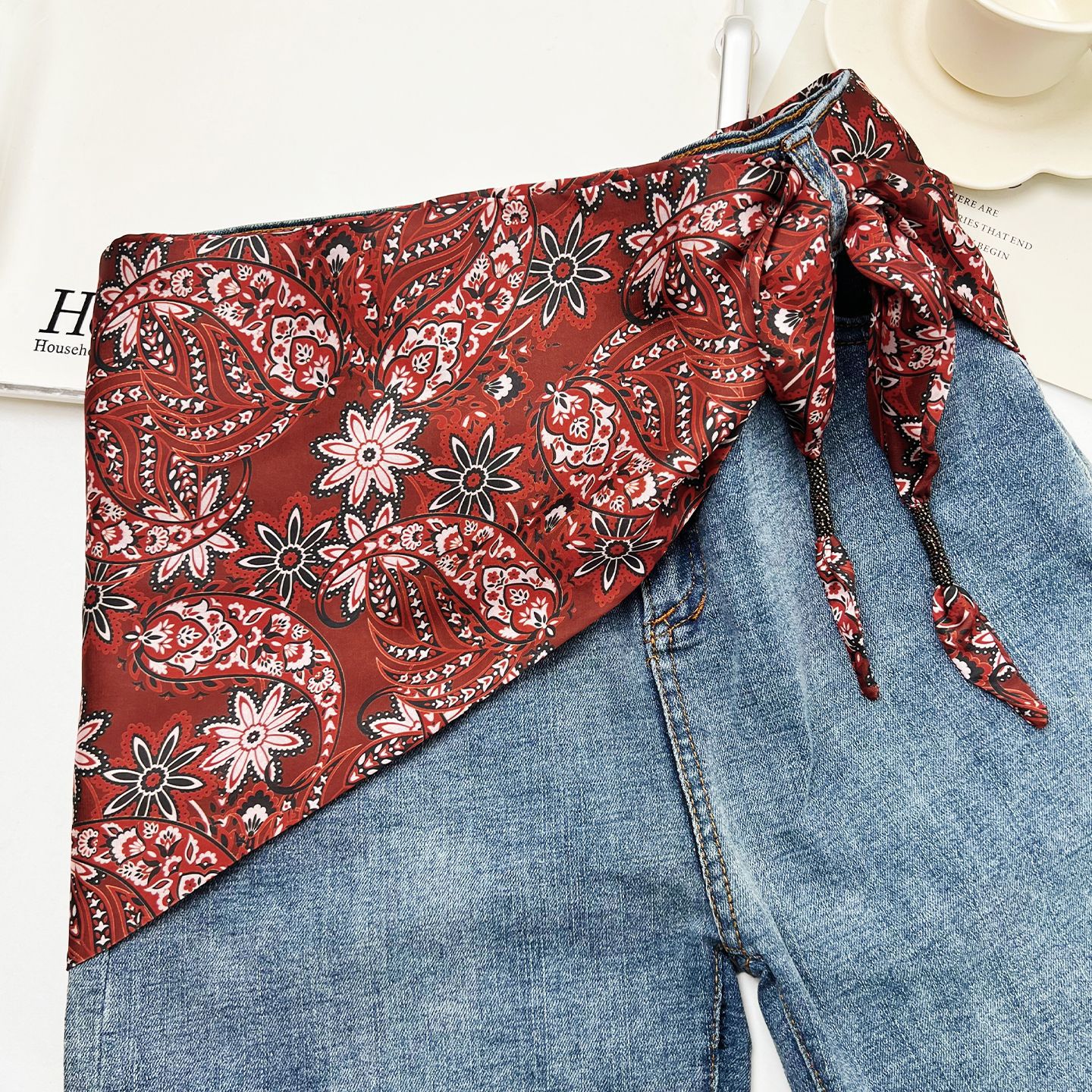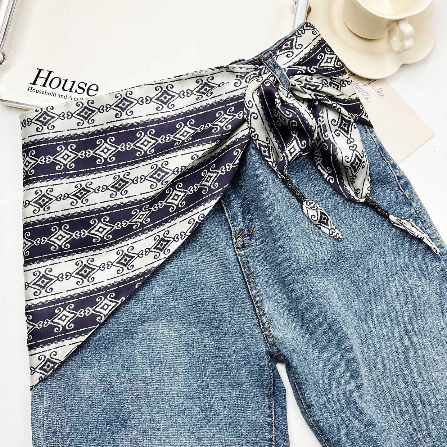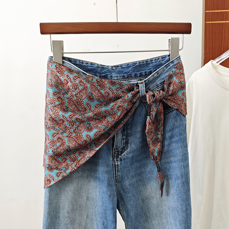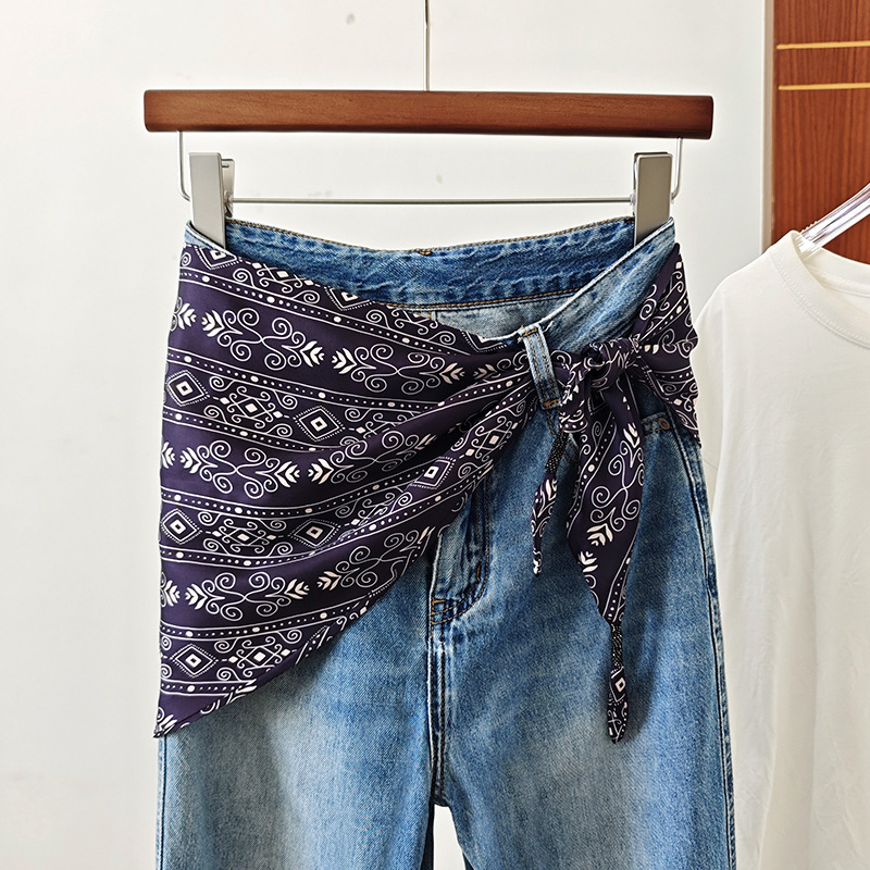여성을위한 실크 스카프 벨트 2025 새로운 스타일 장식 허리 청바지와 스커트 긴 삼각형 스카프 엉덩이 커튼 도매