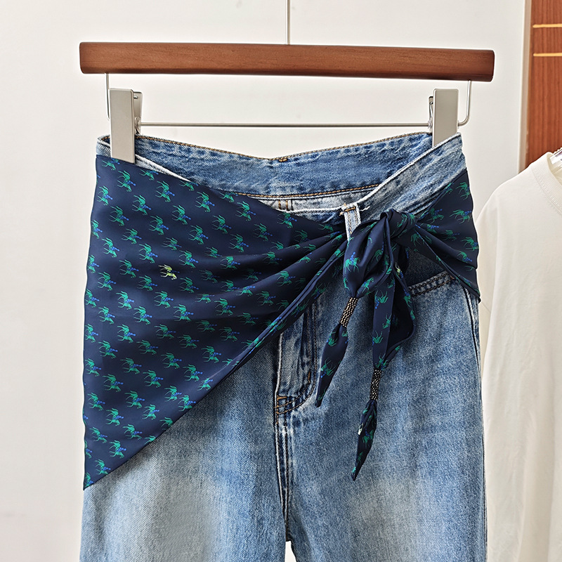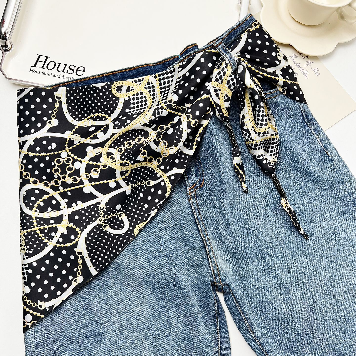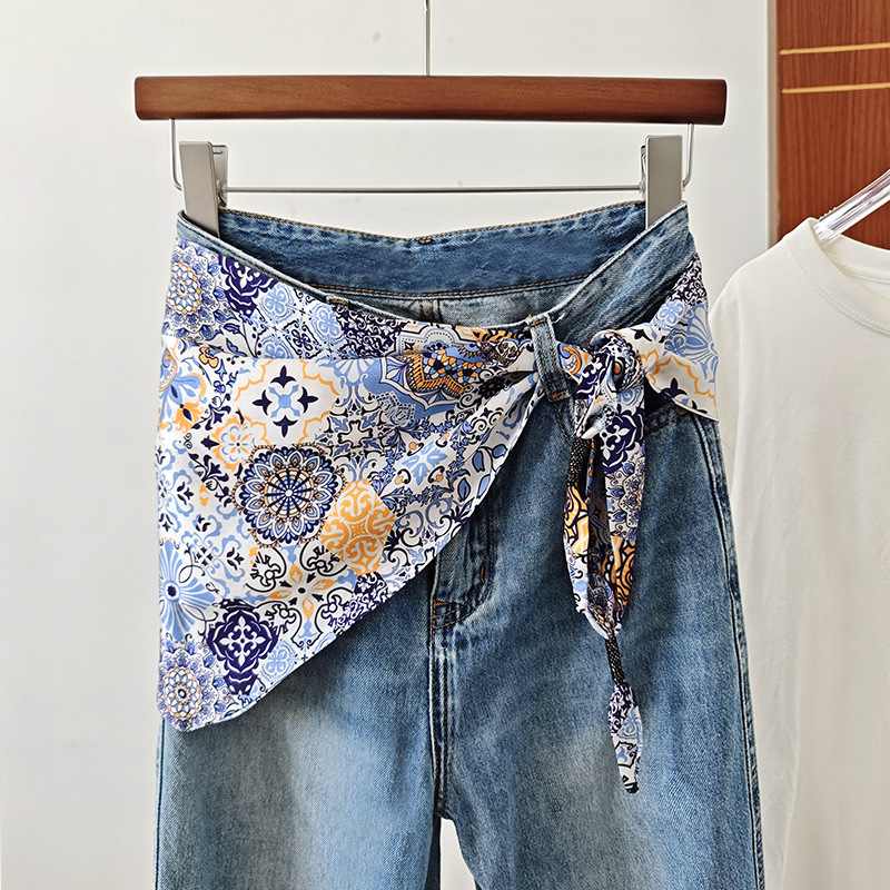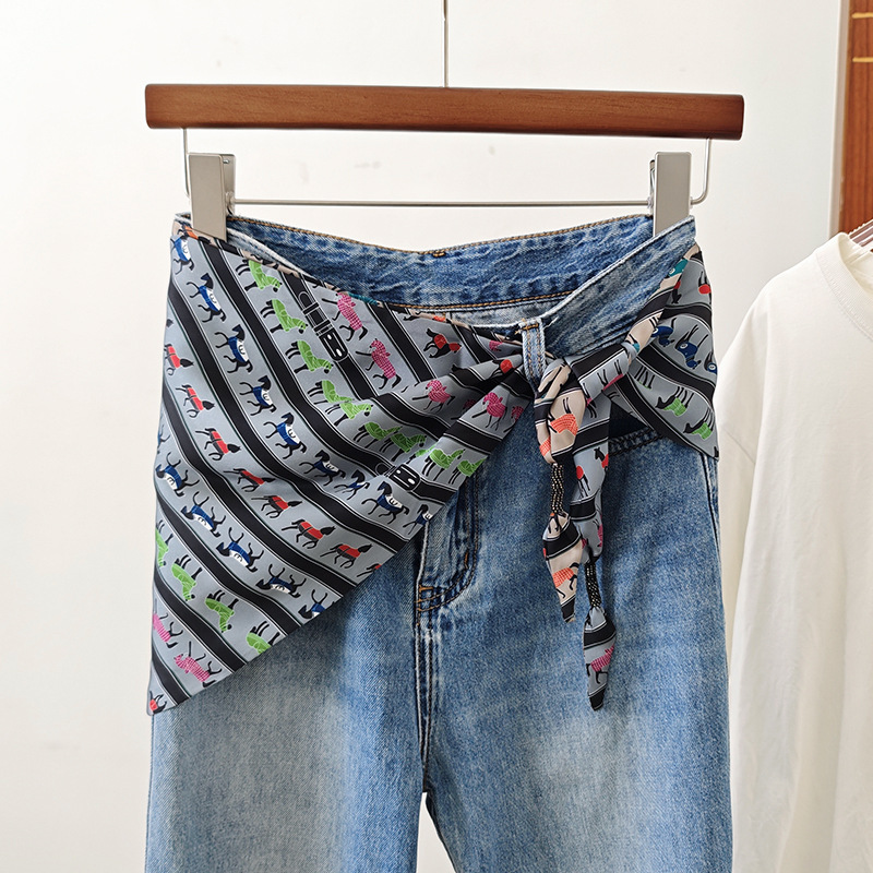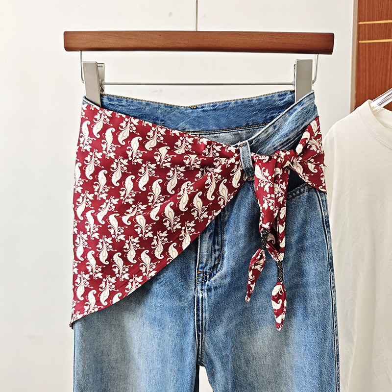 여성을위한 실크 스카프 벨트 2025 새로운 스타일 장식 허리 청바지와 스커트 긴 삼각형 스카프 엉덩이 커튼 도매