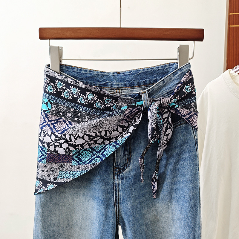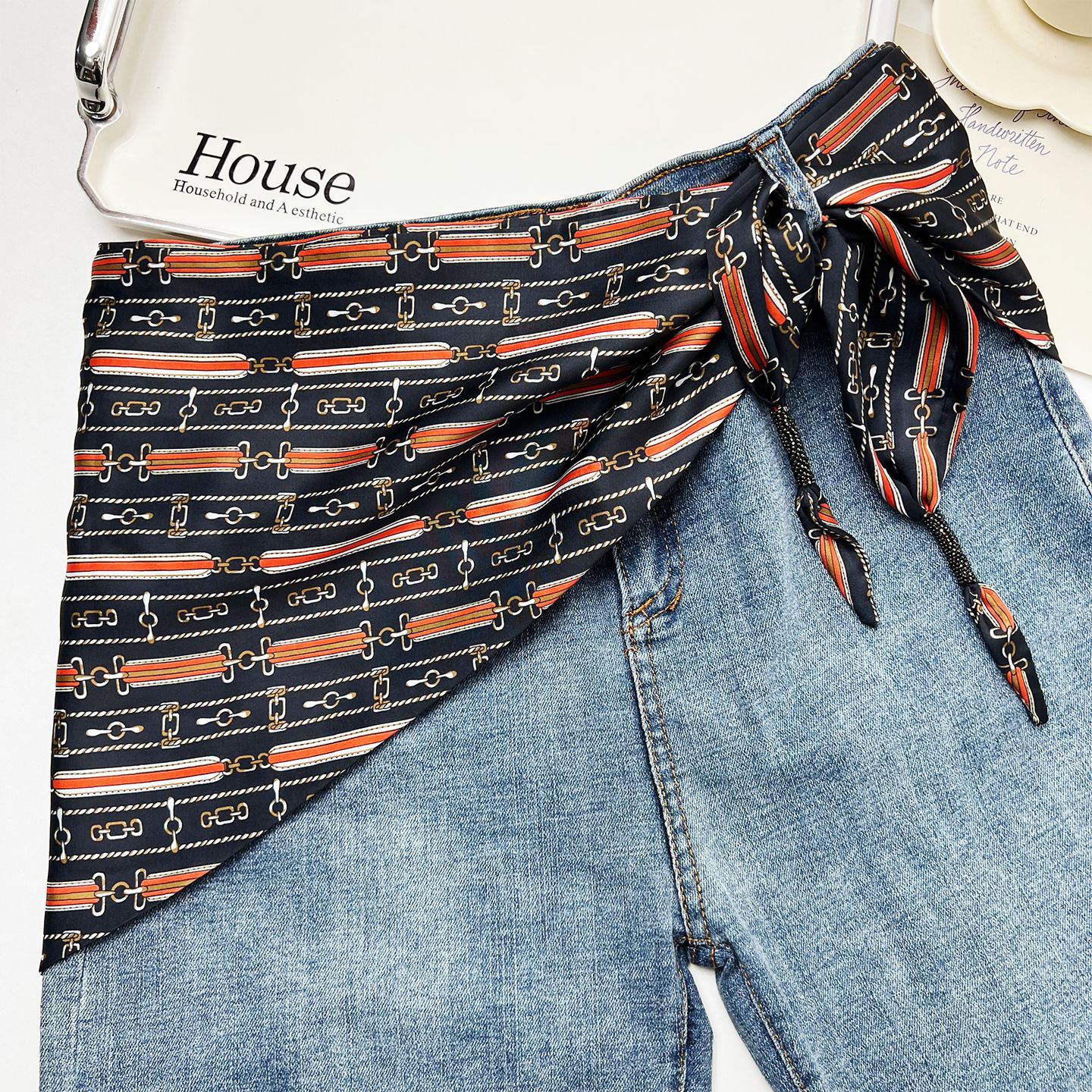 여성을위한 실크 스카프 벨트 2025 새로운 스타일 장식 허리 청바지와 스커트 긴 삼각형 스카프 엉덩이 커튼 도매스토어 가기