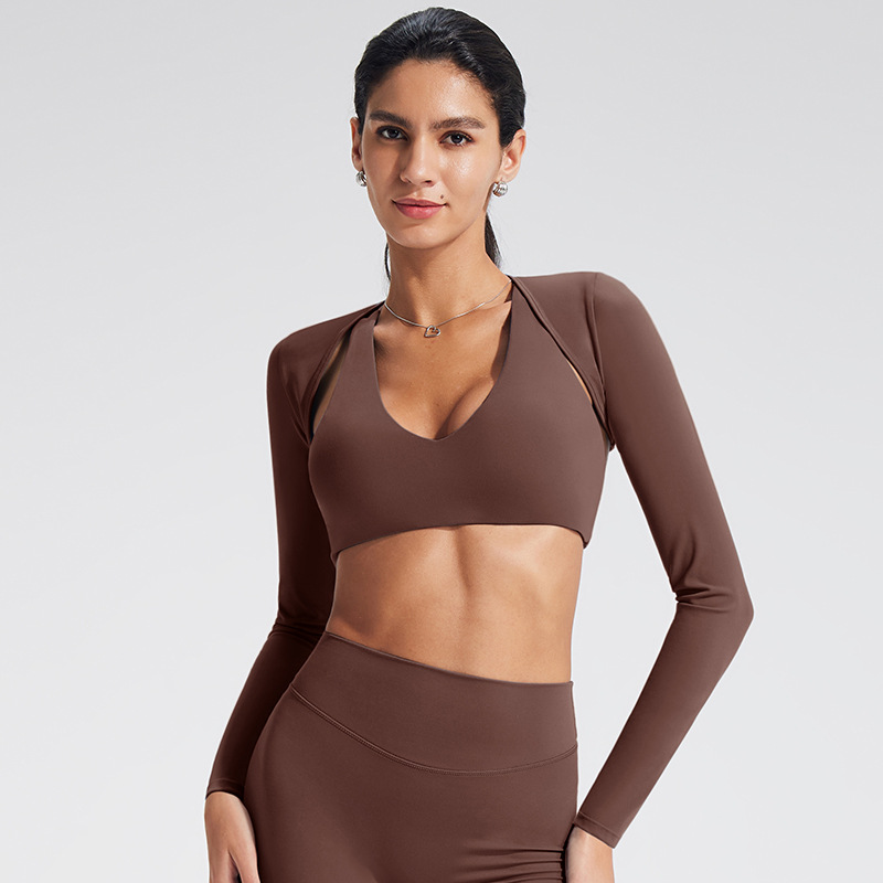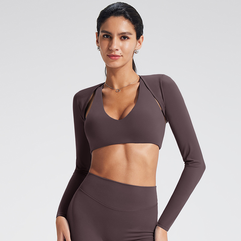 유럽과 미국의 긴팔 요가복 스포츠 카디건 요가 숄 재킷 야외 피트니스 조끼 요가복 여성 재킷