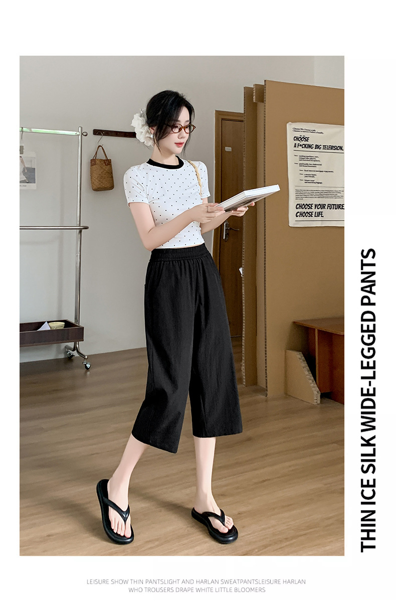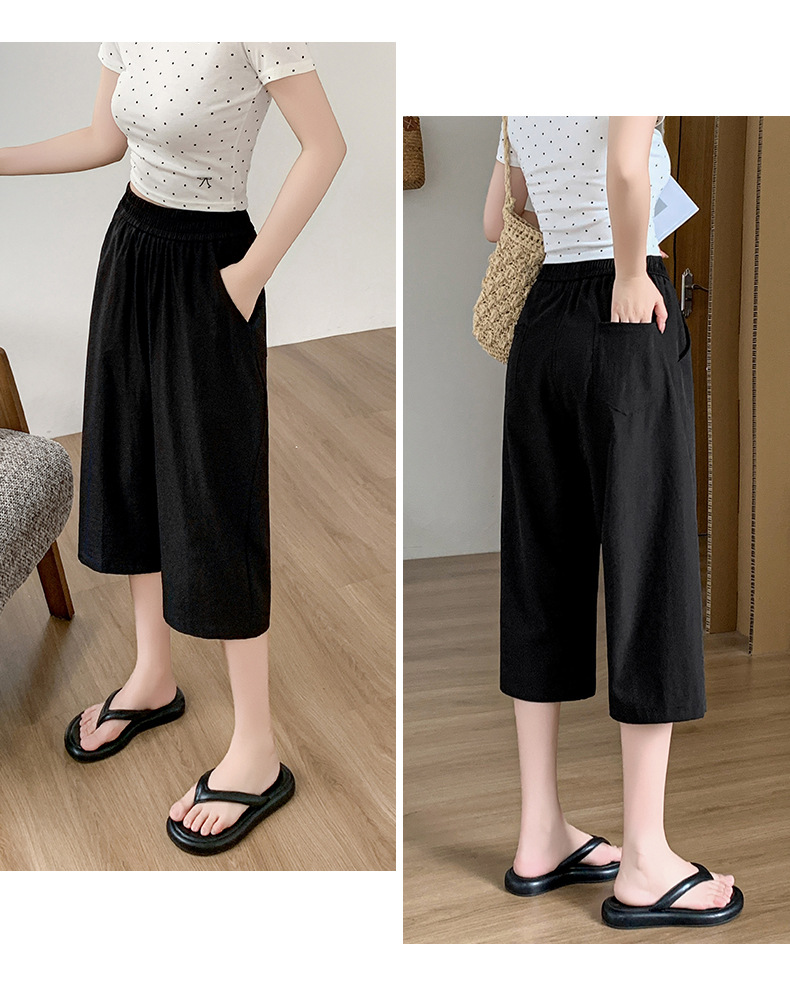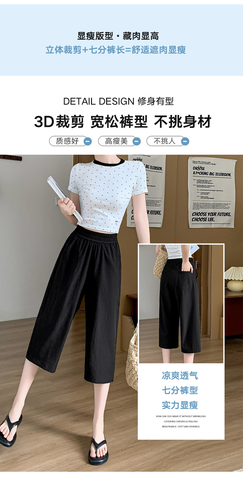 플러스 사이즈 7부 여름 여성 의류 Fat mm 100kg 슬림 루즈 스트레이트 다용도 하이 웨이스트 캐주얼 드레이프 와이드 레그 팬츠
