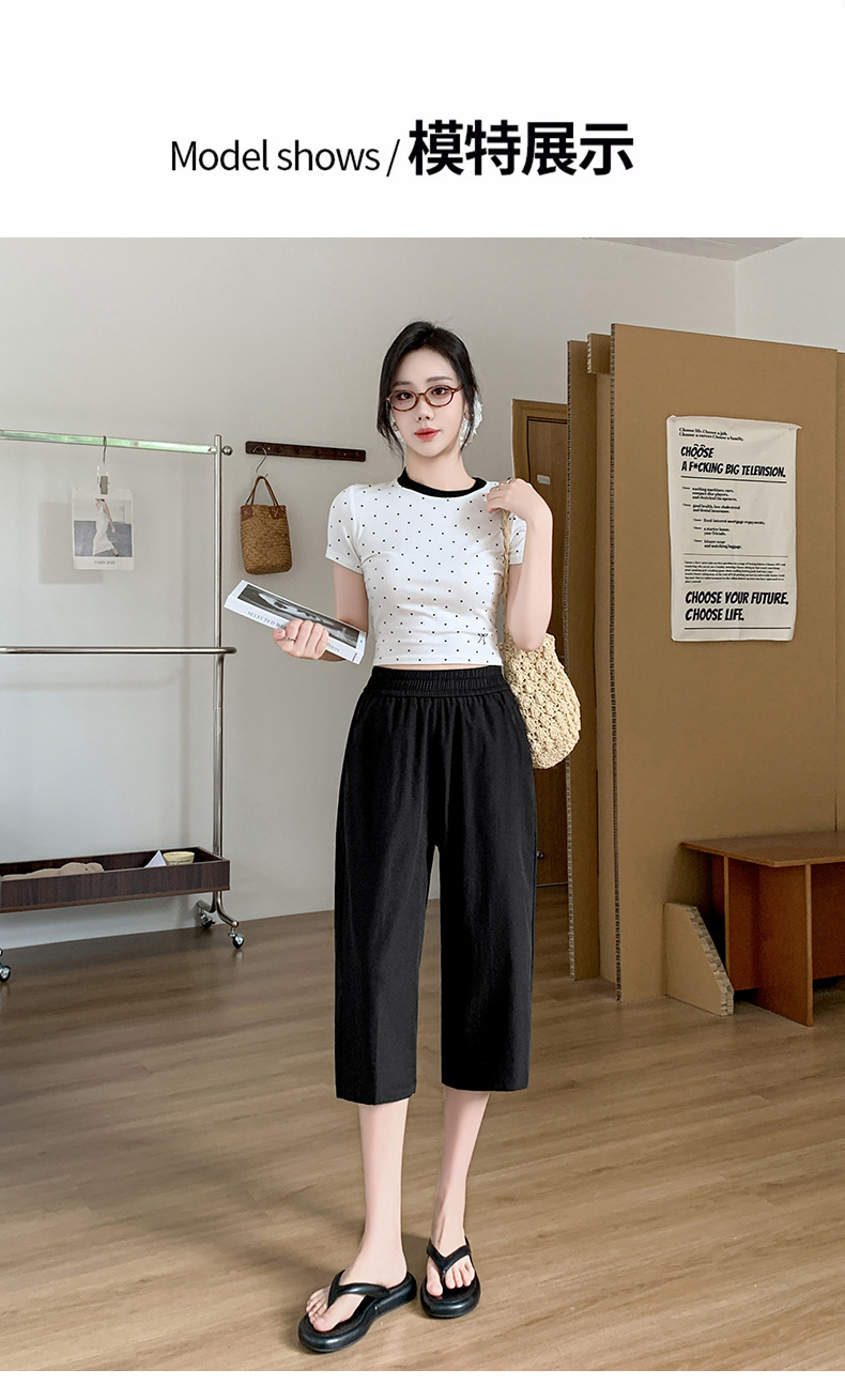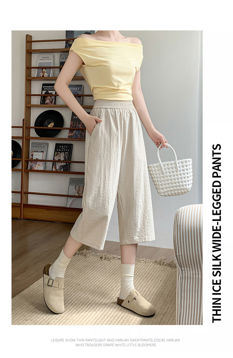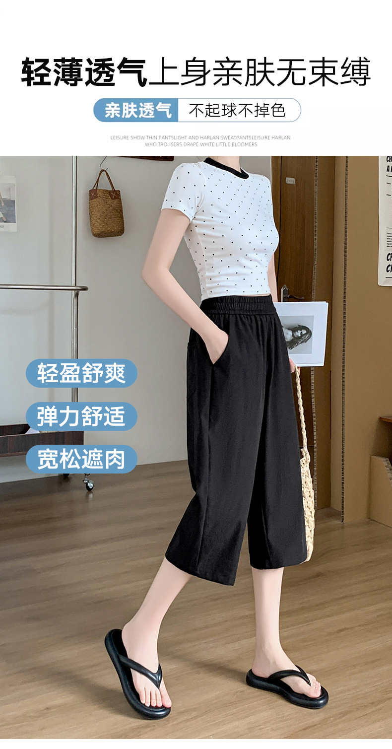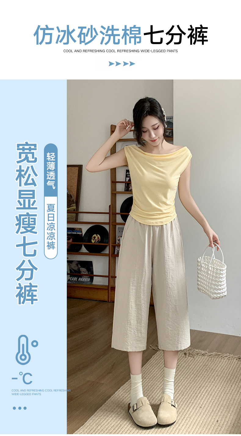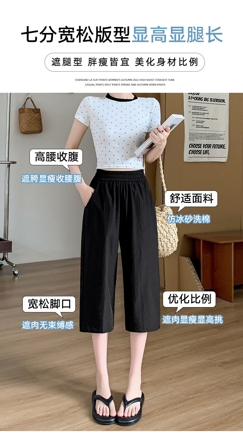 플러스 사이즈 7부 여름 여성 의류 Fat mm 100kg 슬림 루즈 스트레이트 다용도 하이 웨이스트 캐주얼 드레이프 와이드 레그 팬츠스토어 가기
