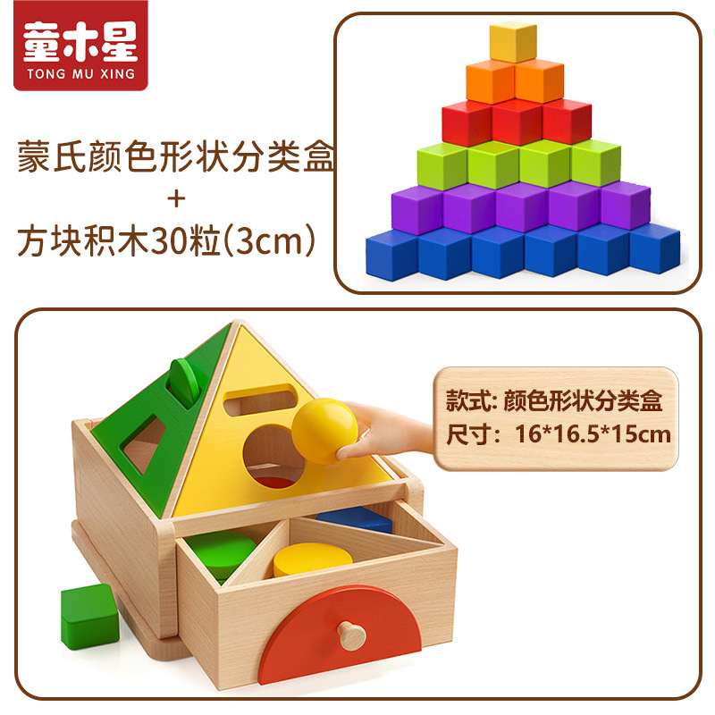 • 몬테소리 색상 및 모양 분류 상자 + 30개의 정사각형 빌딩 블록-3cm