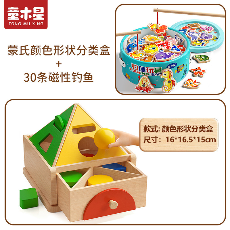 • 몬테소리 색상 및 모양 분류 상자 + [자석 낚시 장난감 30개 + 낚싯대 2개] 버킷