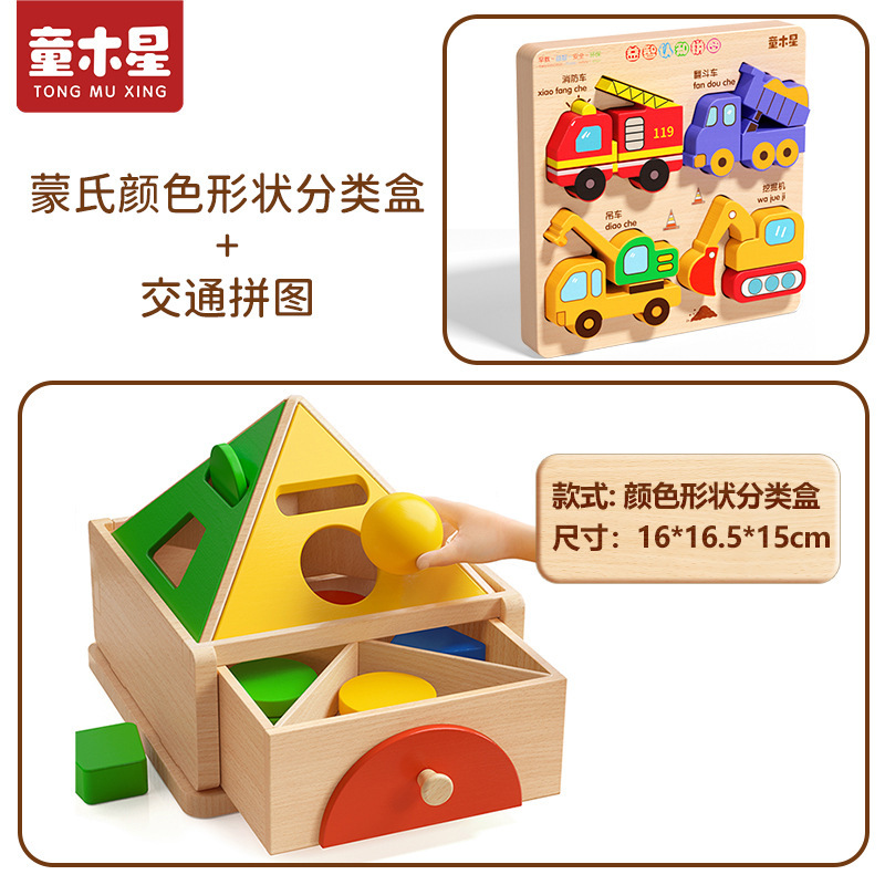 • 몬테소리 색상 및 모양 분류 상자 + 교통 퍼즐 4개