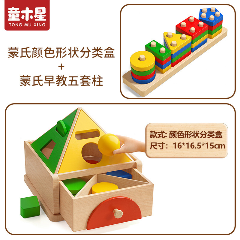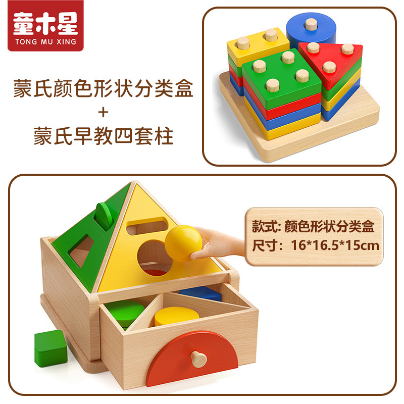 • 몬테소리 색상 및 모양 분류 상자 + 기하학적 기둥 5세트