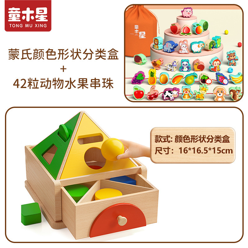 • 몬테소리 색상 및 모양 분류 상자 + 5-in-1 과일 매칭 보드
