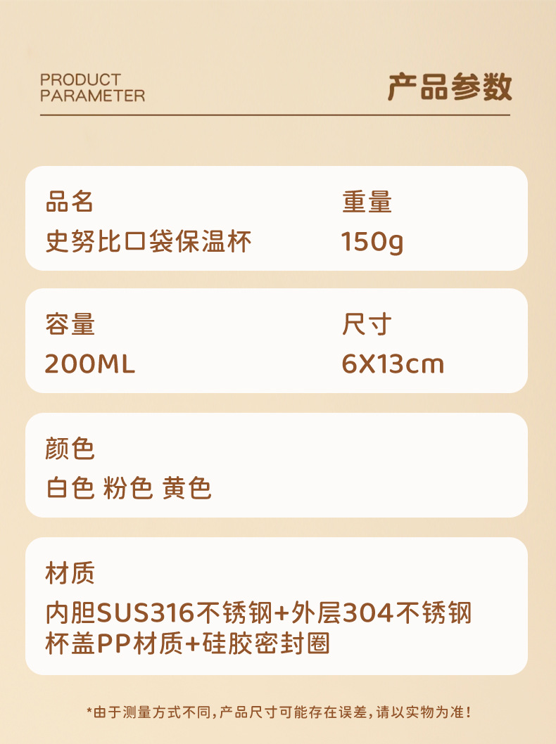 스누피 미니 보온병 컵 새로운 316 소형 휴대용 컵 소녀 작은 용량 귀여운 포켓 워터 컵스토어 가기
