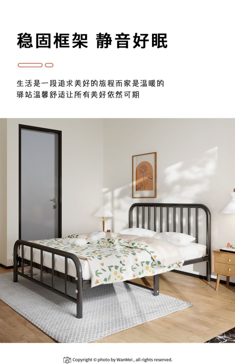 유럽식 철제 침대 강화 싱글 침대 간단한 기숙사 철제 프레임 1.68m 현대 임대 주택 더블 침대 B&B스토어 가기
