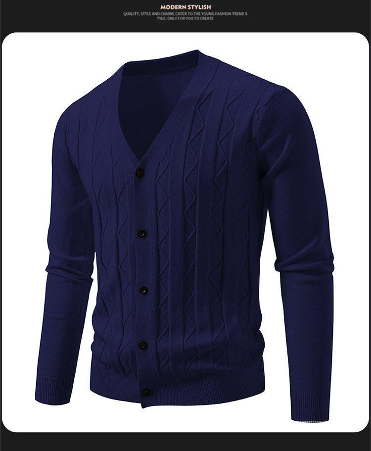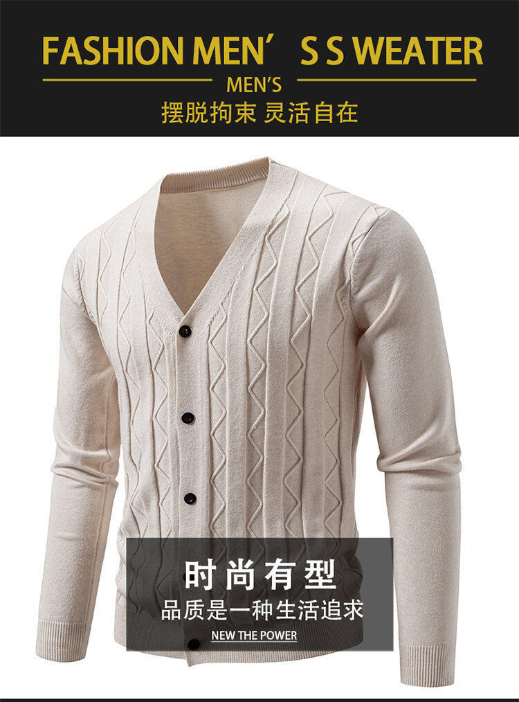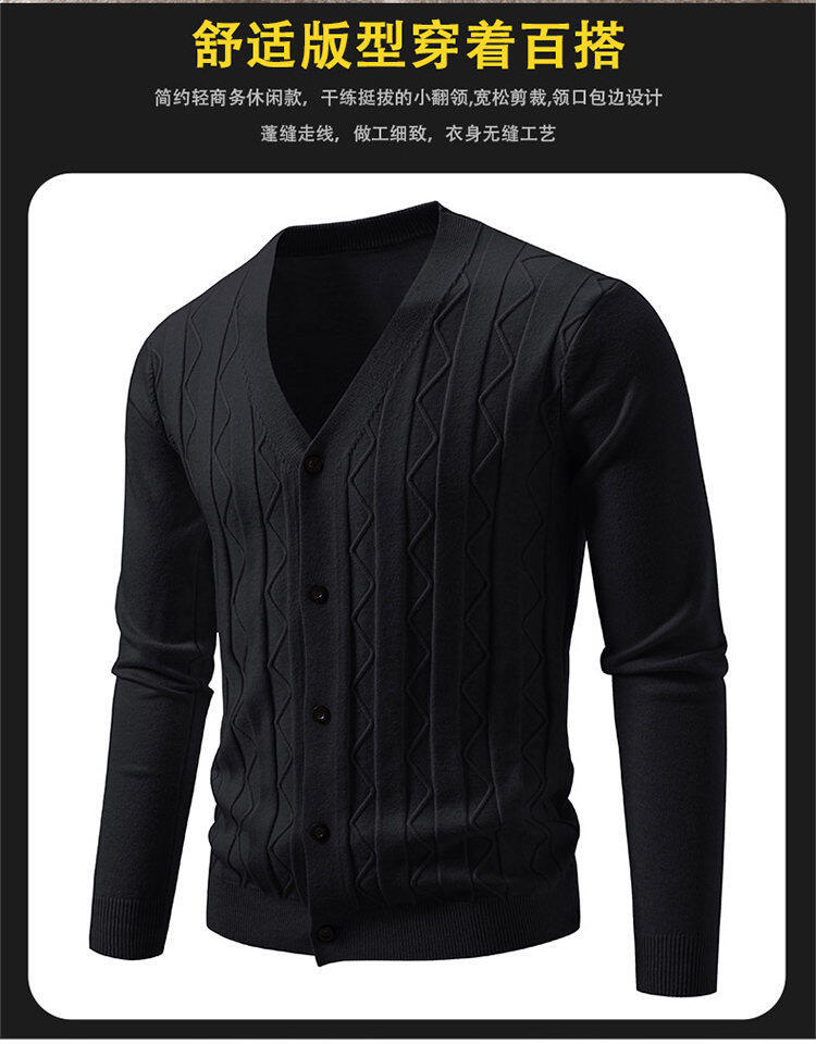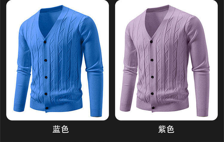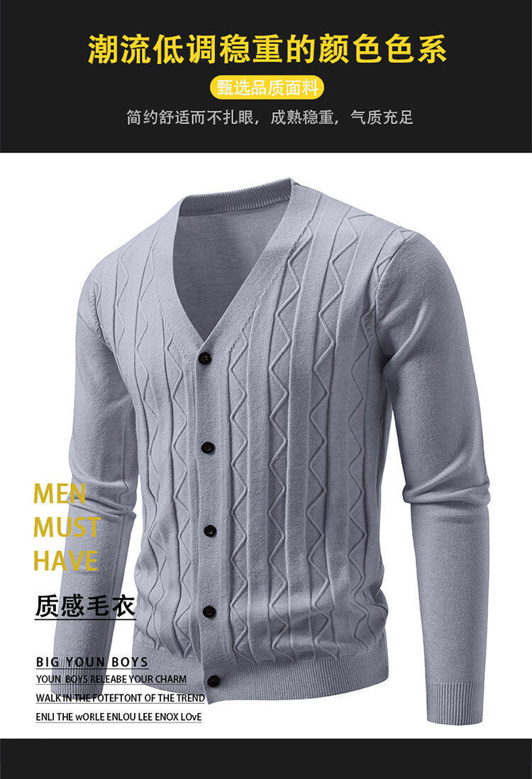 2025 새로운 가을, 겨울 크로스 보더 남성 패션 트렌드 카디건 스웨터 청소년 V 넥 자카드 캐주얼 스웨터 남성스토어 가기