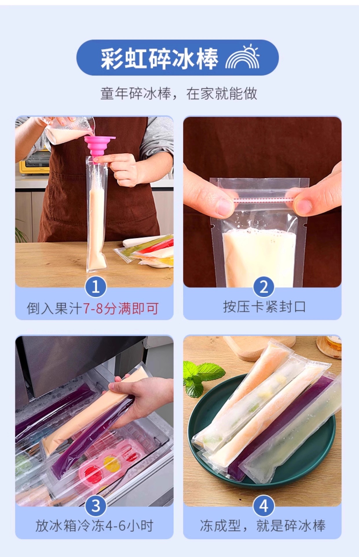 일회용 아이스백 몰드, 자체 밀봉, 찢을 수 있는 얼음 트레이, 식용 냉동 아이스 큐브, 얼음 분쇄기, 가정용 냉장고, 패션프루트스토어 가기