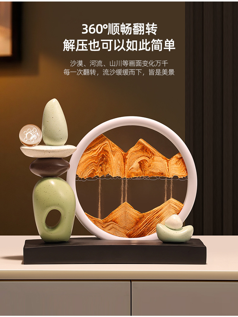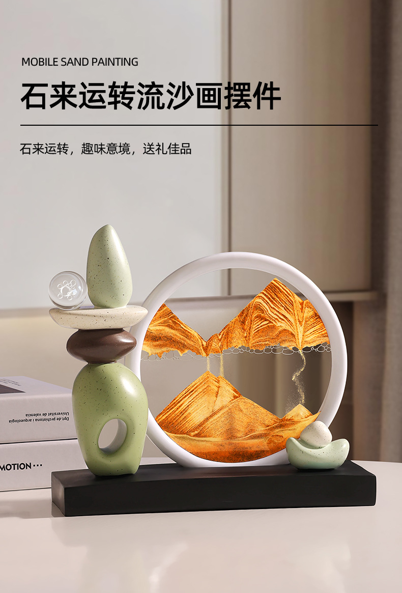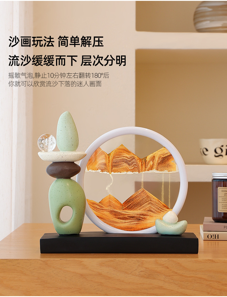 时来运转流沙画摆件客厅电视柜酒柜玄关轻奢高档高级装饰品办公室