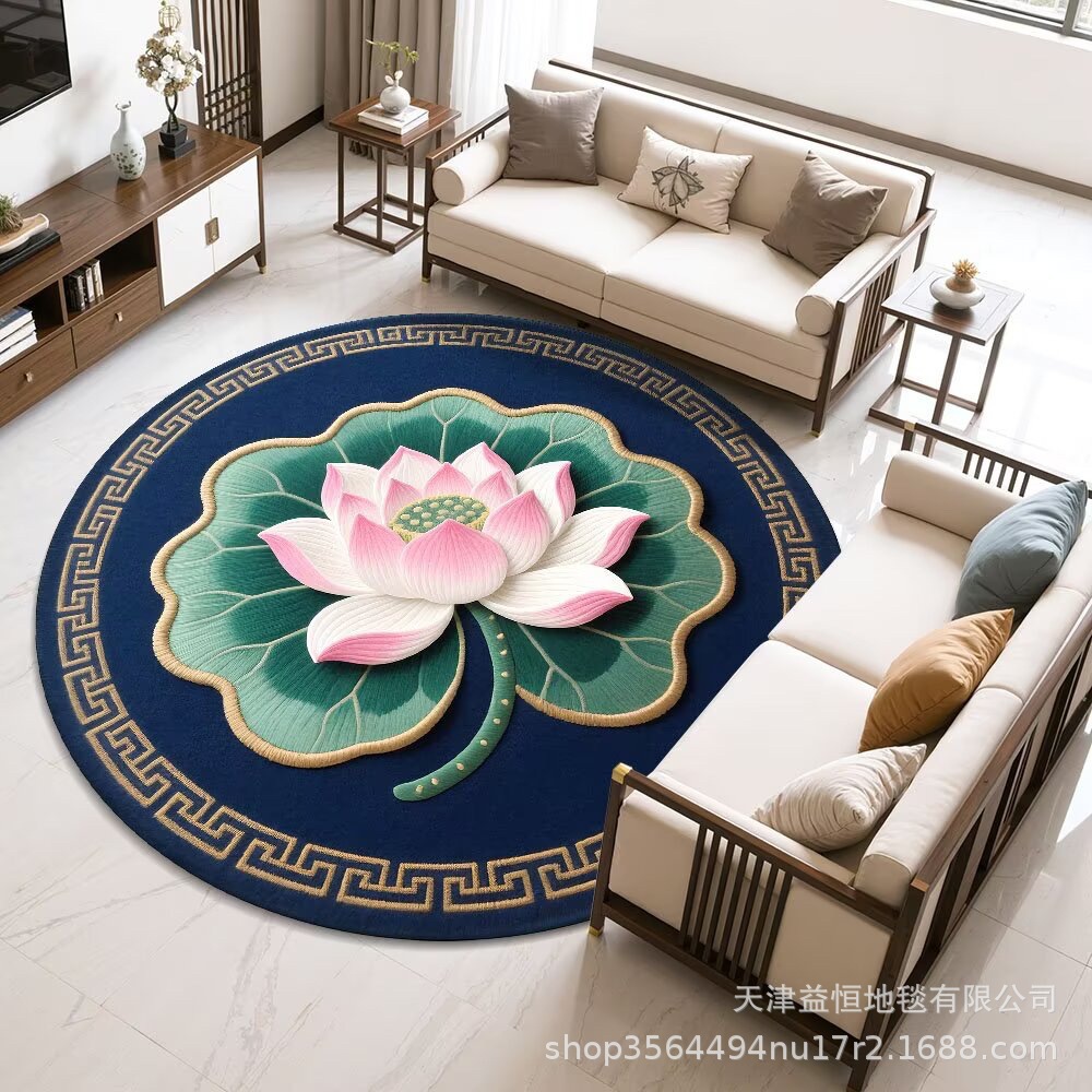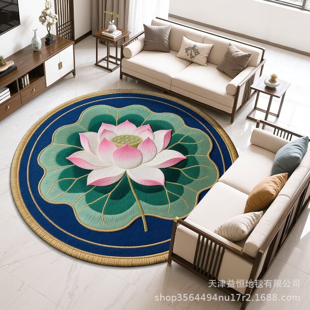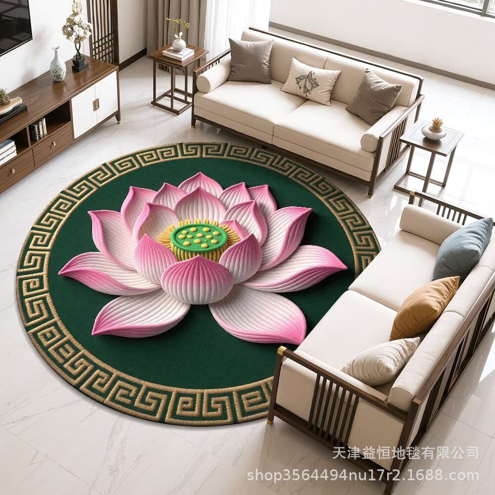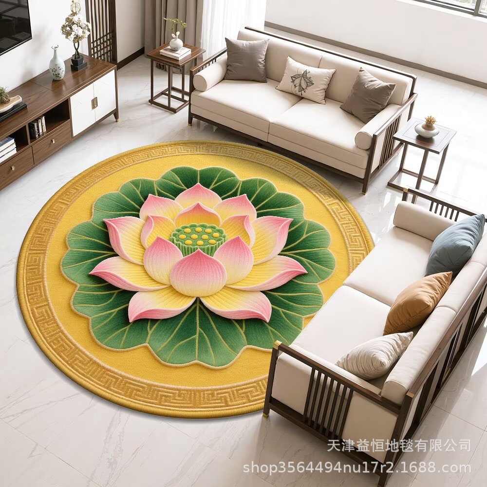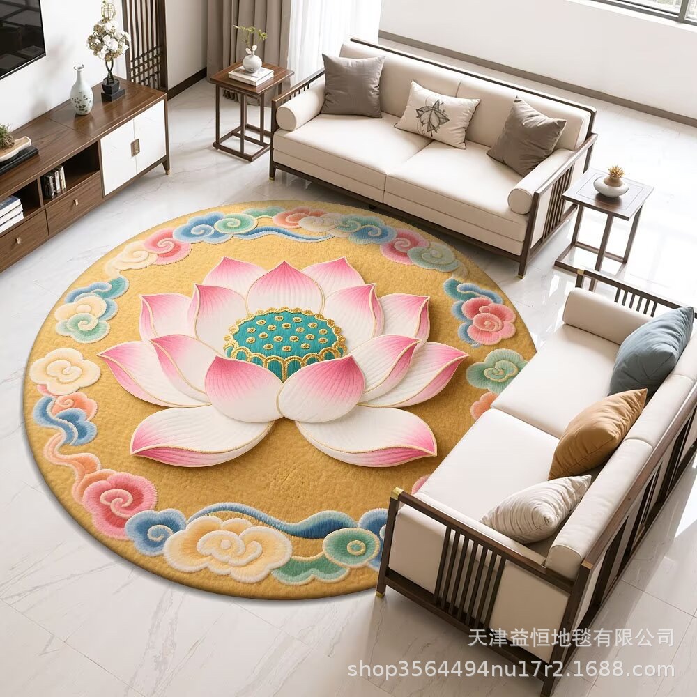 국경 간 연꽃 라운드 크리스탈 벨벳 카펫 홈 거실 커피 테이블 카펫 냉각 바닥 매트 Qibao 카펫
