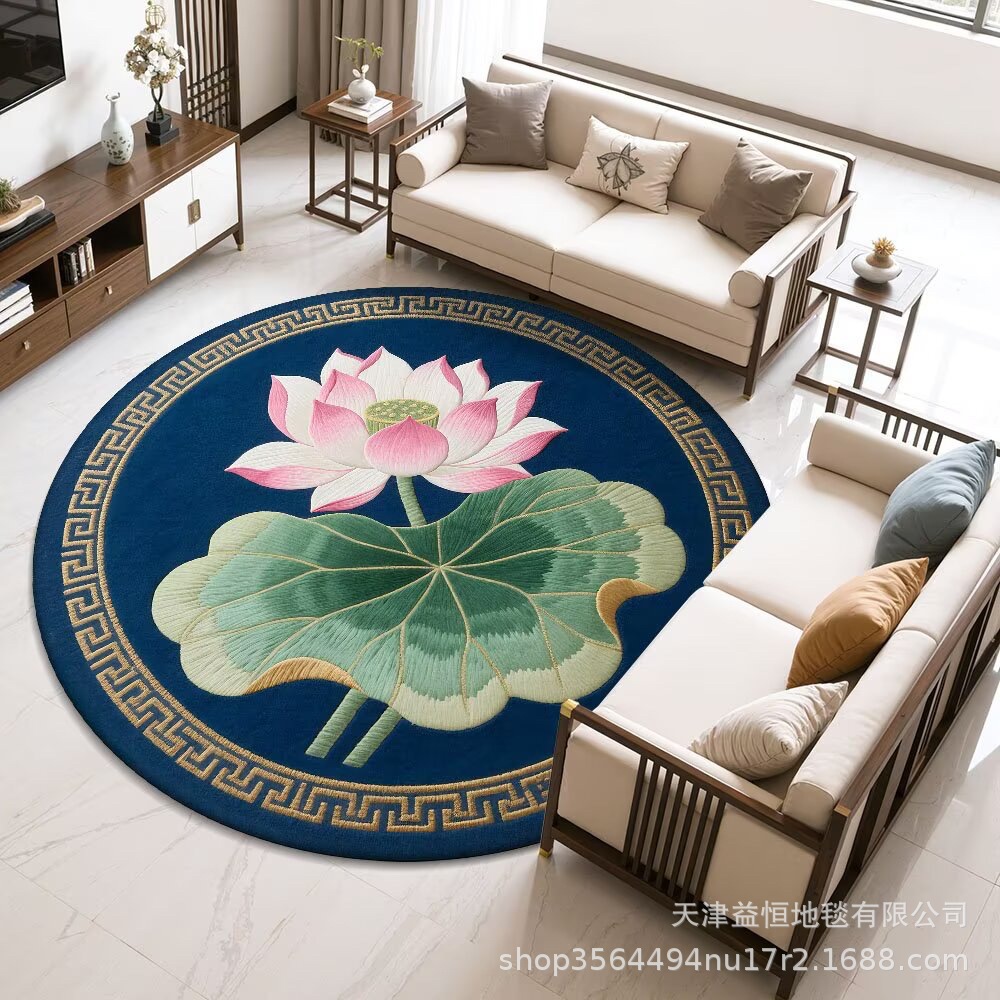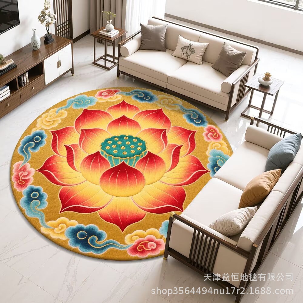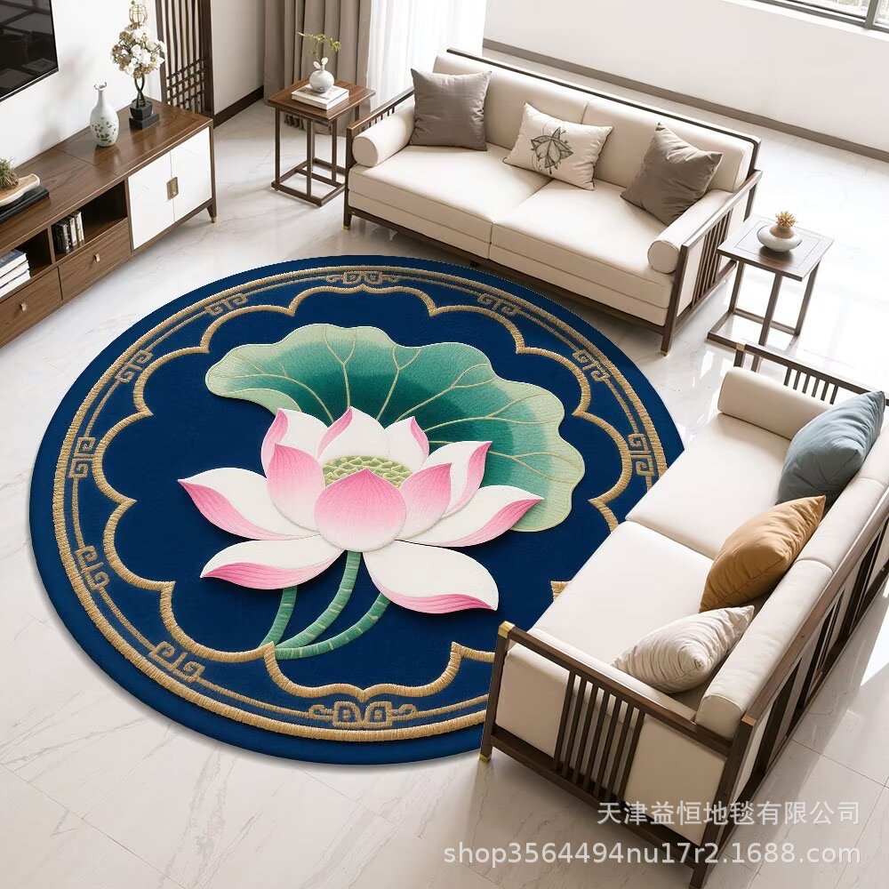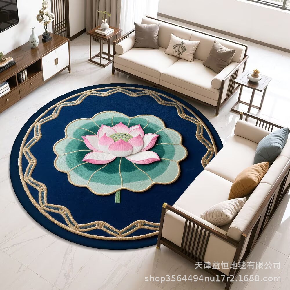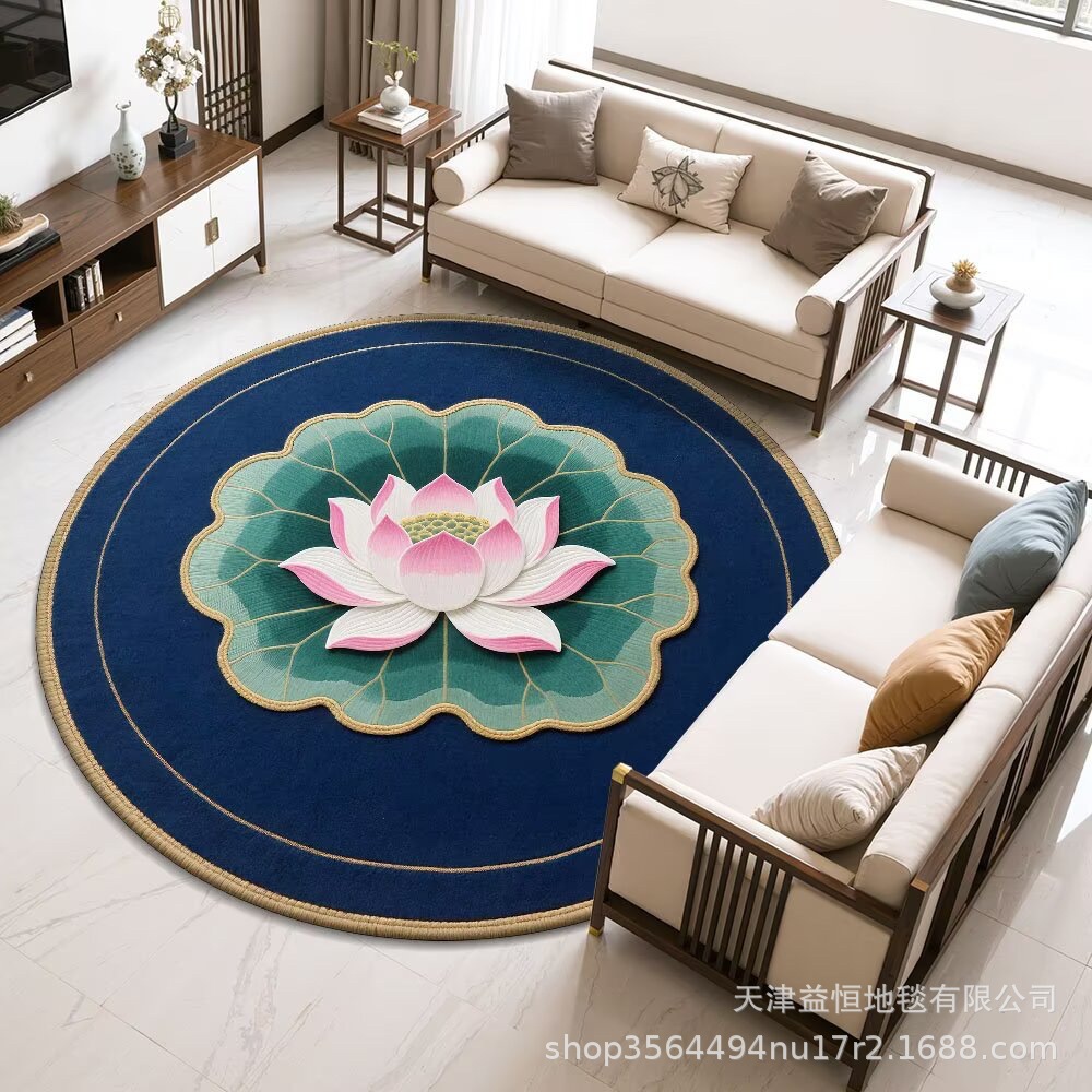 국경 간 연꽃 라운드 크리스탈 벨벳 카펫 홈 거실 커피 테이블 카펫 냉각 바닥 매트 Qibao 카펫