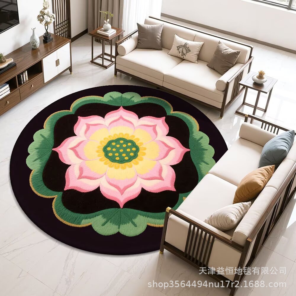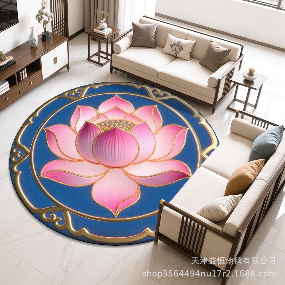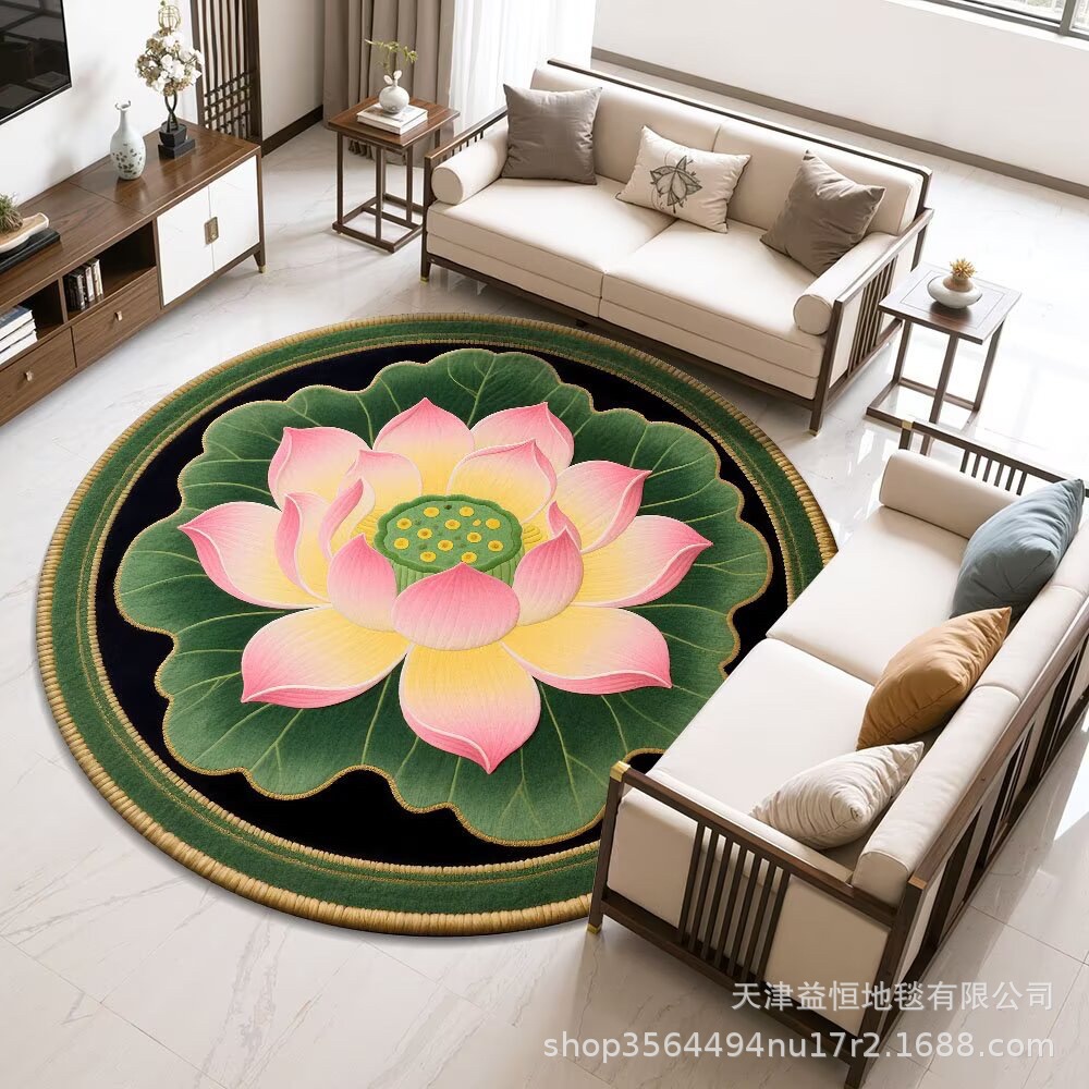 국경 간 연꽃 라운드 크리스탈 벨벳 카펫 홈 거실 커피 테이블 카펫 냉각 바닥 매트 Qibao 카펫스토어 가기