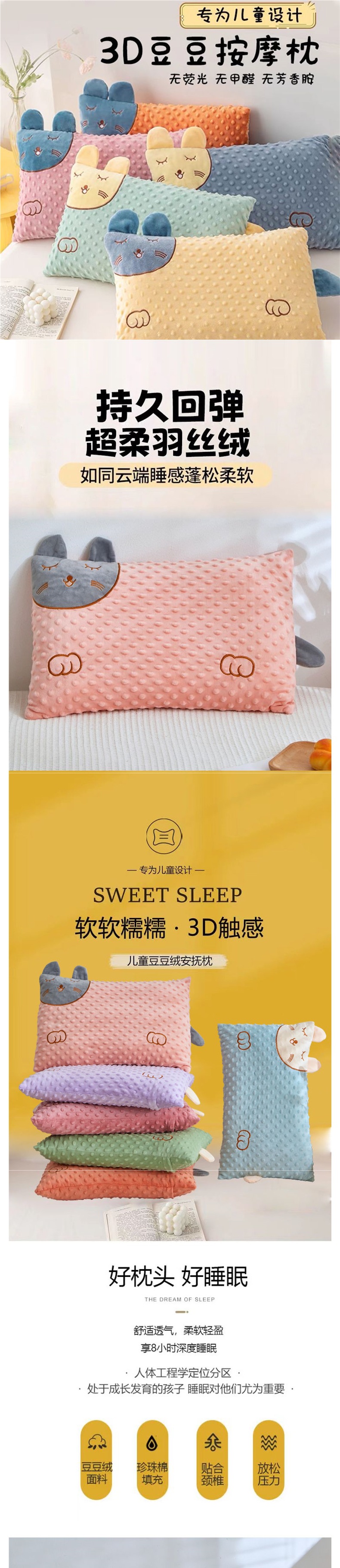 어린이 베개 만화 플러시 콩 베개 베개 커버 베개 코어 학생 소녀 싱글 낮잠 30x50 분리 및 세척 가능