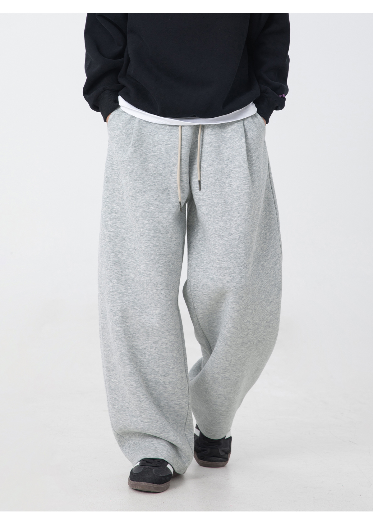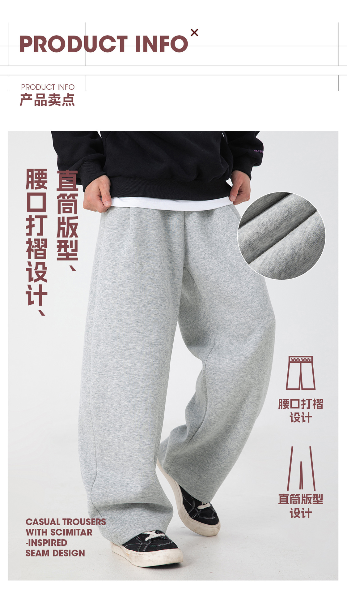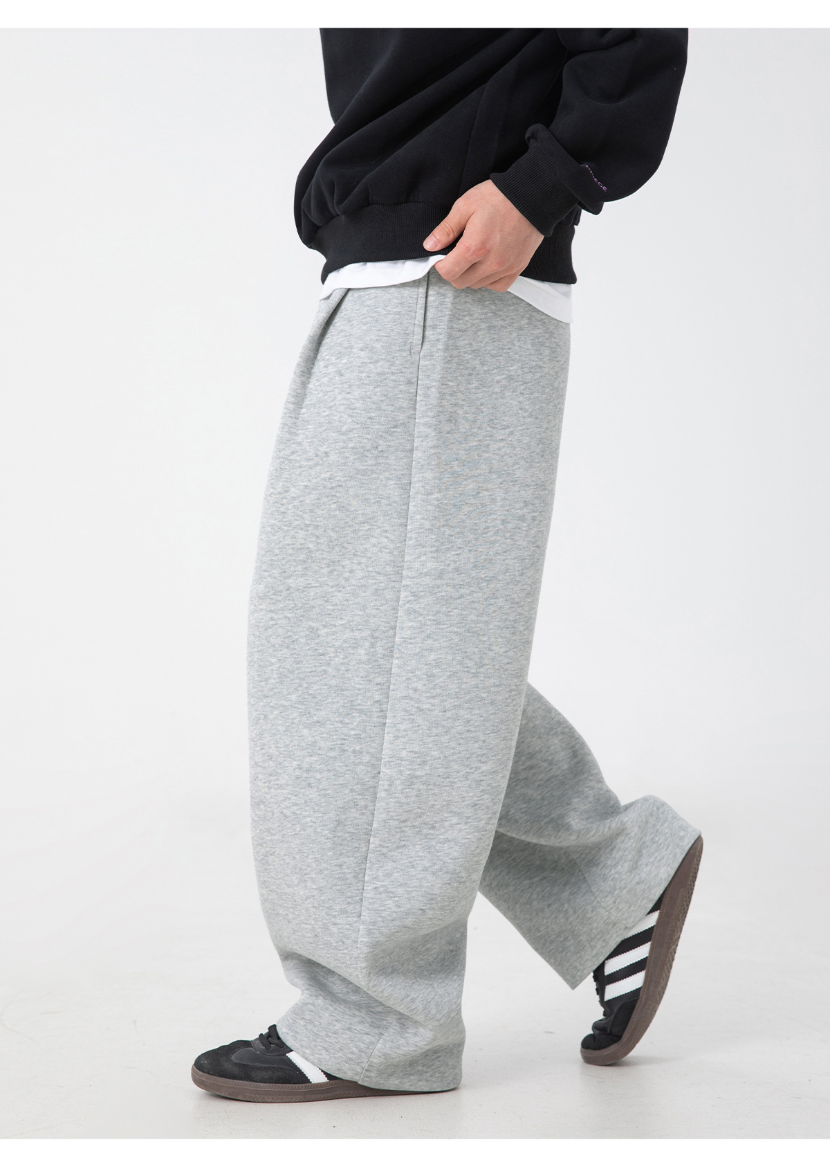 남성용 헤비 질감 플리츠 캐주얼 바지 25 가을 신작 스트레이트 루즈 롱 팬츠 트렌디 브랜드 실루엣 스포츠 바지스토어 가기